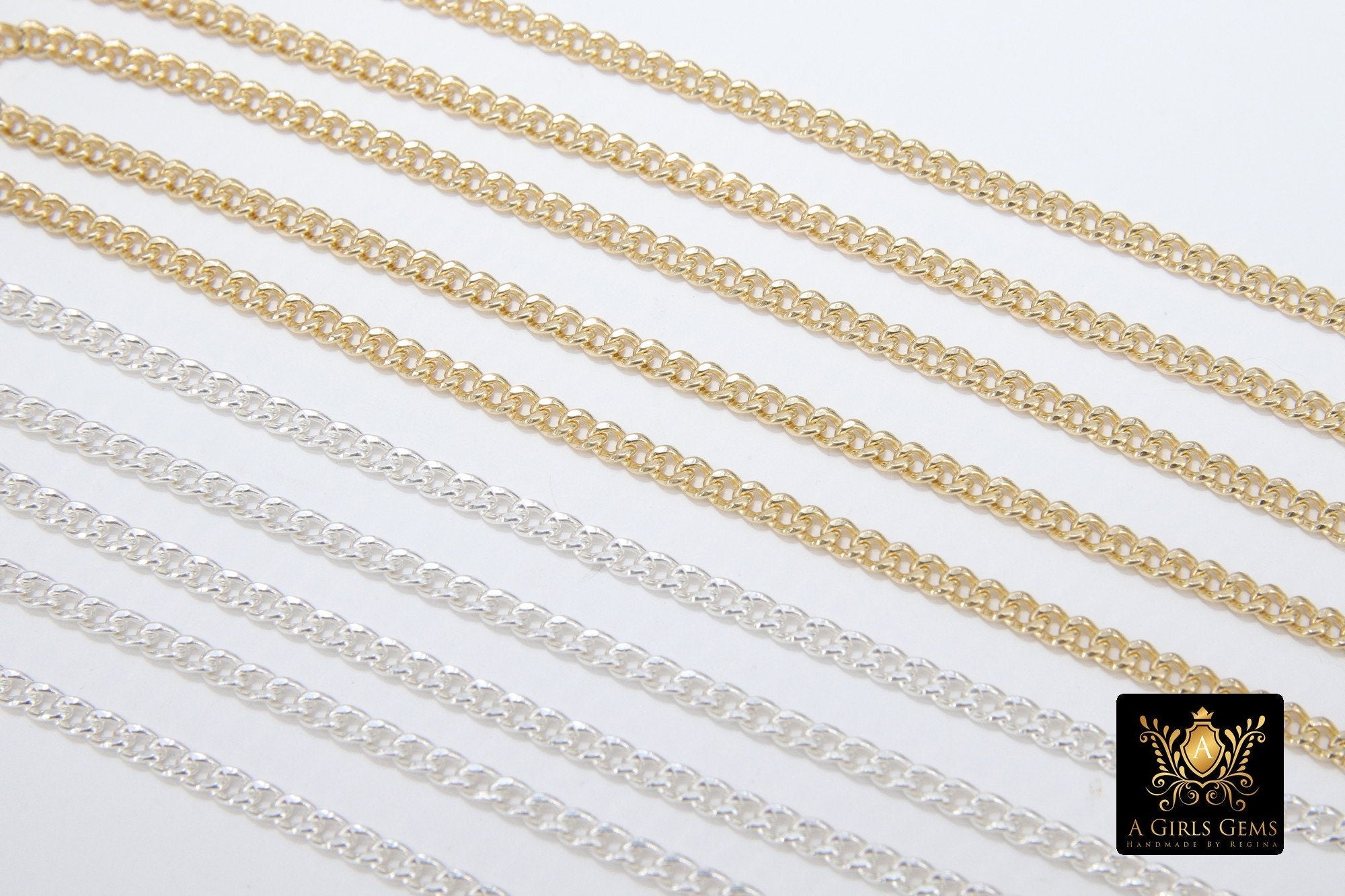 925 Sterling Silver Curb Chain, 3.5 mm 14 K Gold Filled Dainty Curb Chain CH# 809, 14 K Gold Filled Unfinished Cable CH #734