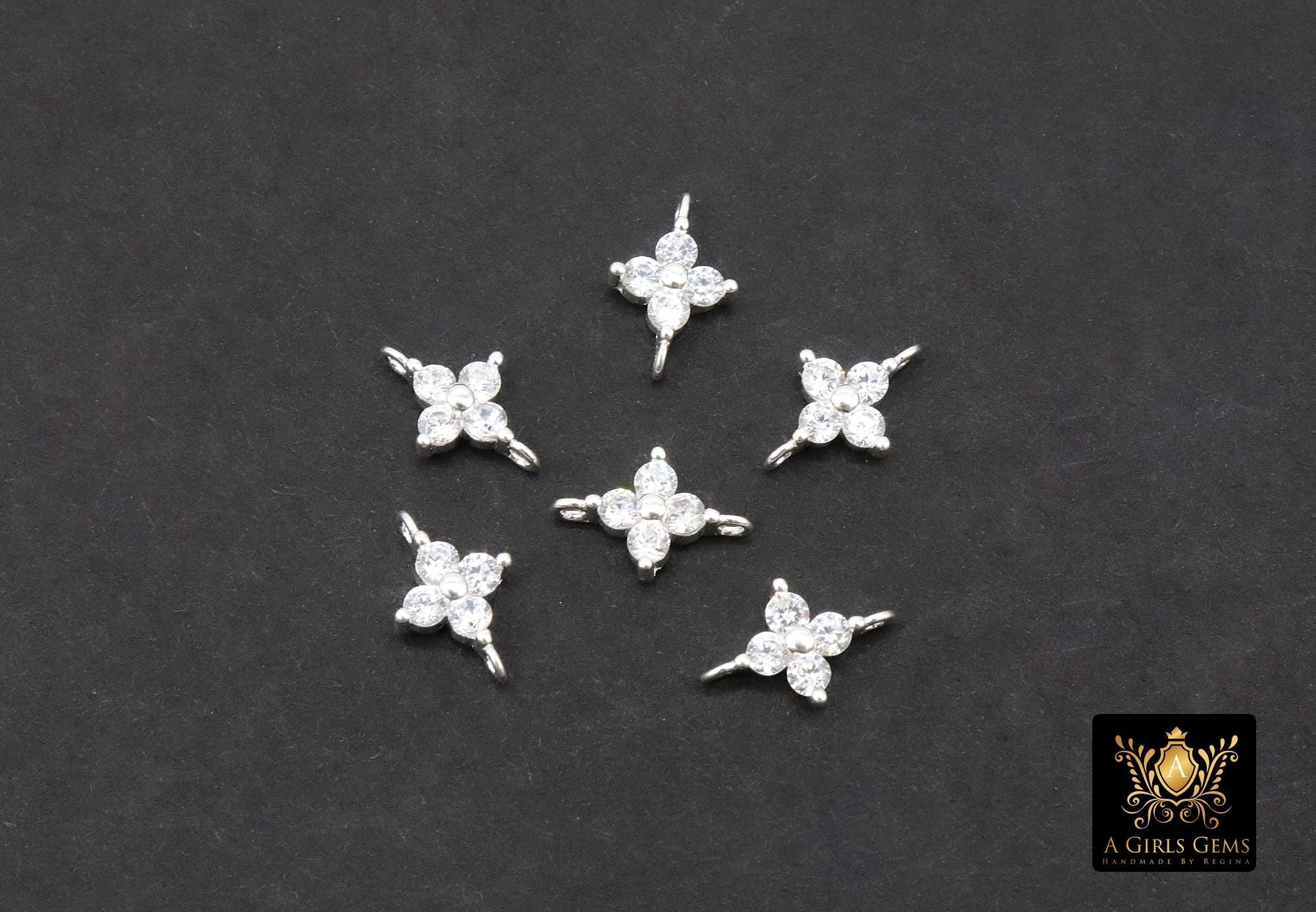 925 Sterling Silver CZ Clover Connectors, 14 K Gold Filled 6 mm Cubic Zirconia Quatrefoil Perpendicular Links # 3668, Minimulist