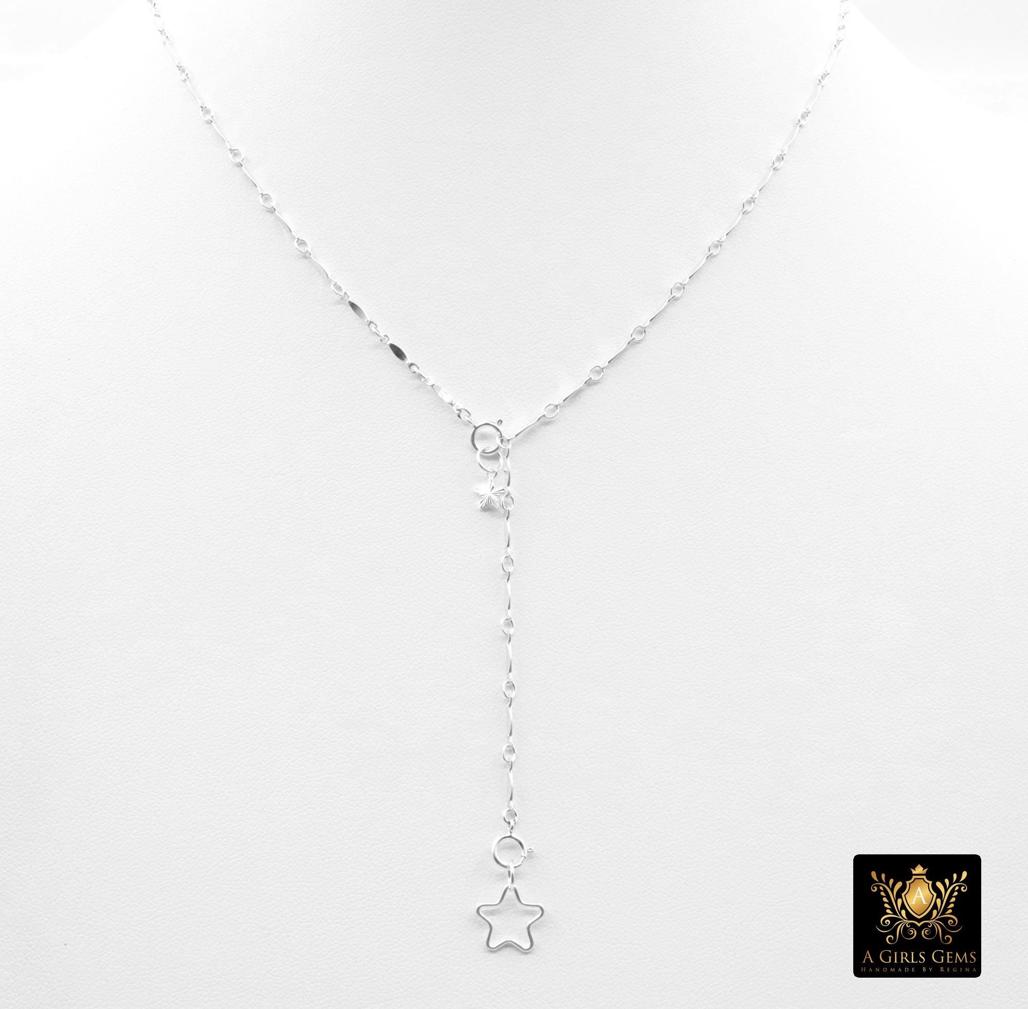 925 Sterling Silver Dap Bar Necklace, Adjustable 14 K Gold Filled Bar Chain Lariat Choker, Long Bar Charms Necklace