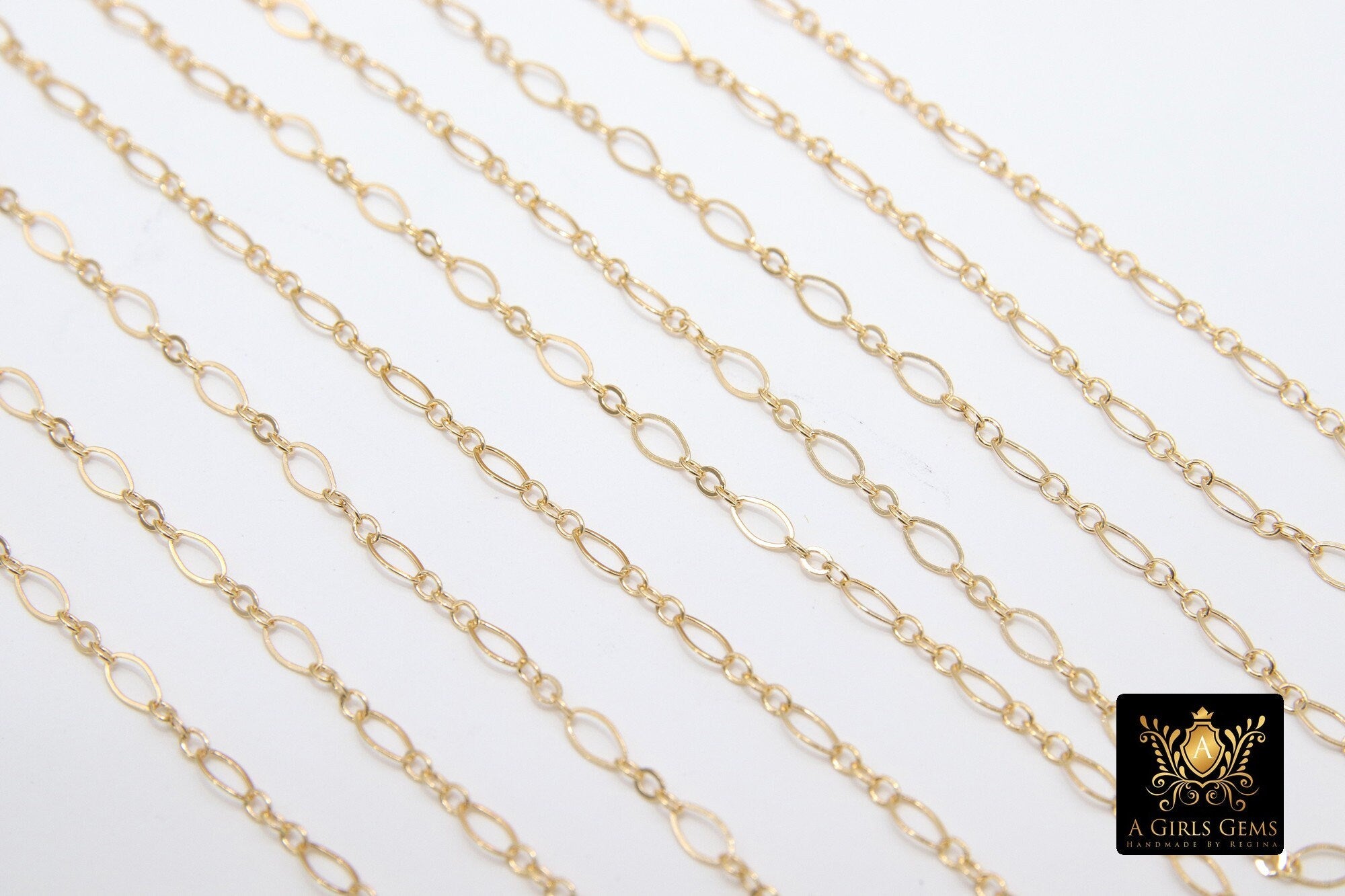 925 Sterling Silver Paperclip Jewelry Chains, 4.8 mm 14 K Gold Filled CH# 805, Drawn Flat Rolo
