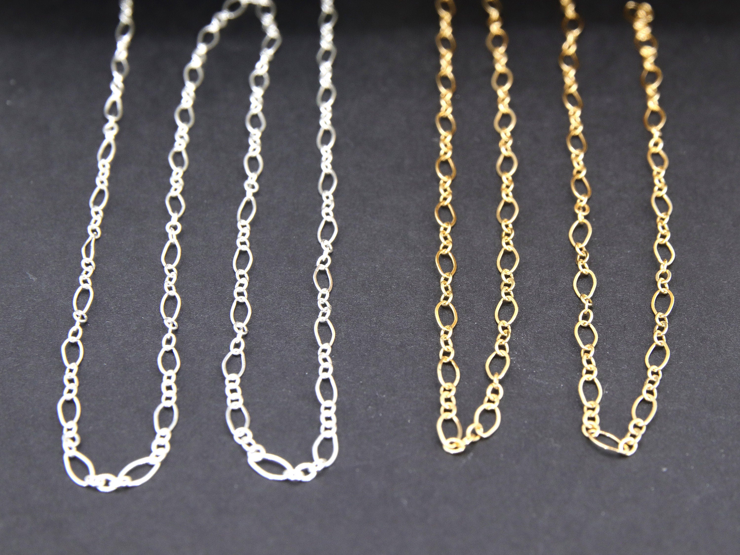 Notes Regarding Chains: All of our chains are cut in a continuous chain unless it is the end of a roll. We do not cut 10 feet in 1 foot sections. Any 925 Sterling Silver or Silver plated chains will tarnish over time when exposed to air. We suggest keeping your chains in a sealed jewelry bag to help prevent this. I'm sorry chains are not eligible for return or exchange. We recommend you try a foot sample before large purchases. Stainless steel chains come in gold or silver and are known for their non tarnishing properties. We don't control the colors, where gold may be applied on tight weave or small chains. All of our 14 K Gold Filled chains, charms, or findings are Genuine 14/20 Gold Filled. To be called gold filled by US LAW, the plating needs to be very very thick, at least 5% of weight.