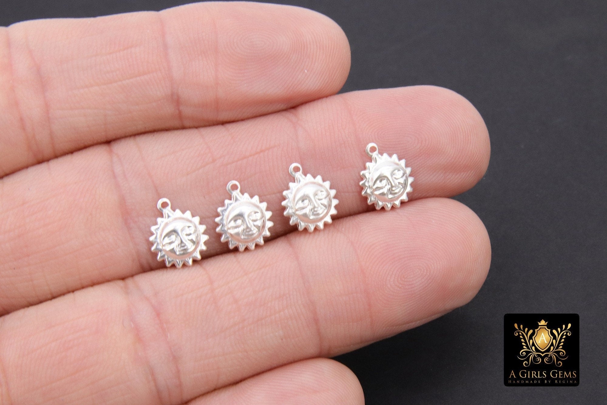 925 Sterling Silver Sun Charm, 14 K Gold Filled Sunshine Happy Face # 2264, Mini Charms Jewelry