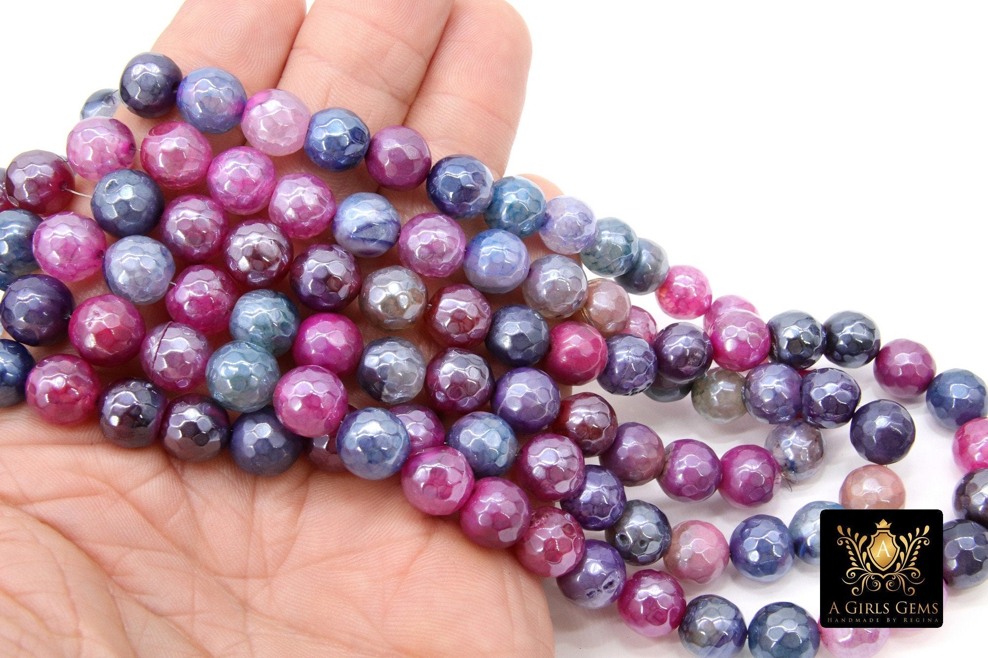 Electroplated Faceted Pink Lavender Agate Beads, Multi Colored Blue Purple Beads BS #241, sizes in 10 mm 14 inch FULL Strands