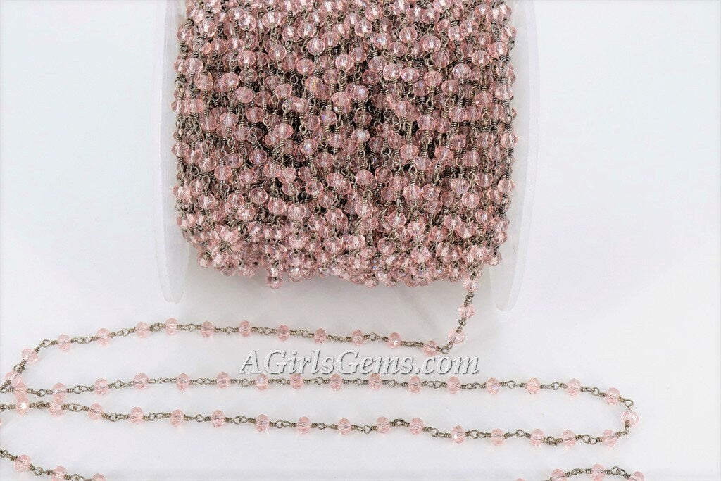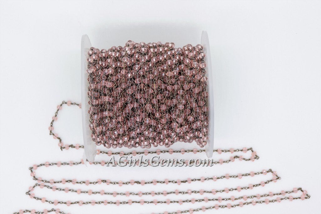 Pink Crystal Rosary Beaded Rosary Chain, Gunmetal Black 4 mm Rondelle Religious Jewelry Chains for Rosary Necklace/Bracelet Jewelry Supplies