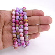 Pink Multi Color Jade Beads, 8 mm Smooth Mixed Pink BS #257, Purple Yellow White Beads