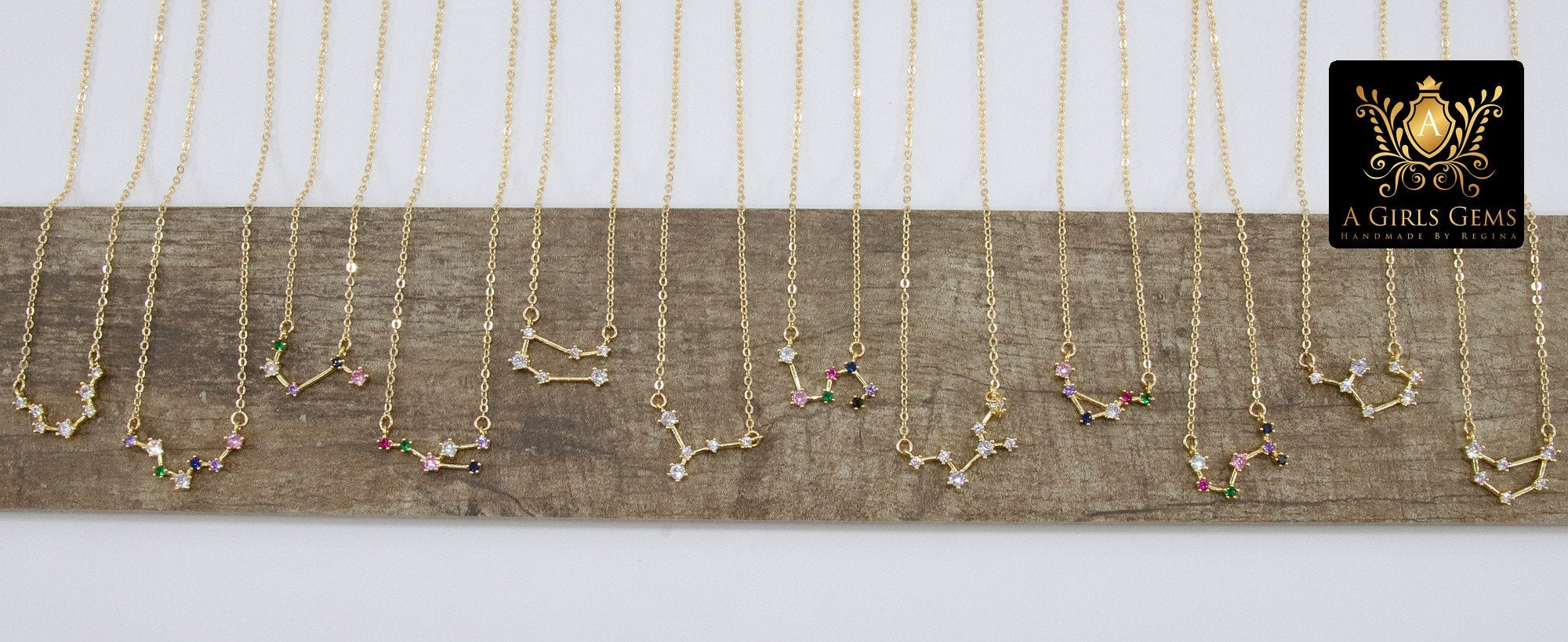 This necklace is on our Gold Filled Dainty Chain with your choose of Zodiac Sign. Includes a 14 K Gold Filled 2 Inch Extender. Our most popular choices are below. Your choice of Rainbow CZ or Clear CZ. If you need a different chain or length, please message us with any questions.