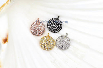 CZ Micro Pave Coin, Small Round Disc Charms in Rose, Gold, Silver, Gunmetal Black Plated, 13 x 15 mm Coin *Diamond Pave* Look Pendants AGG272 **SPECIFICATIONS** Measurements Approximately: 13 mm x 15 mm Holes: 1.0 - 1.5 mm Plated Colors:...