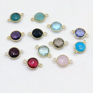 Round Gemstone Connectors, Gold Gemstone Charms, Birthstone Links