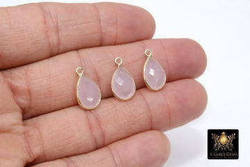 Rose Quartz Teardrop Charms, Gold Plated Oval Pink Gemstones #2848, Sterling Silver Birthstone Pendants