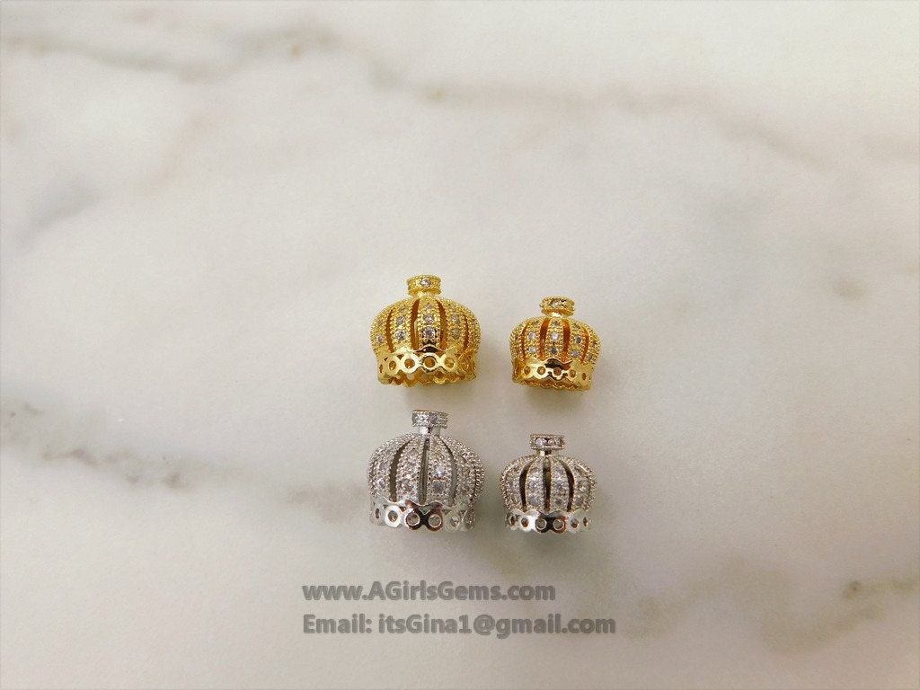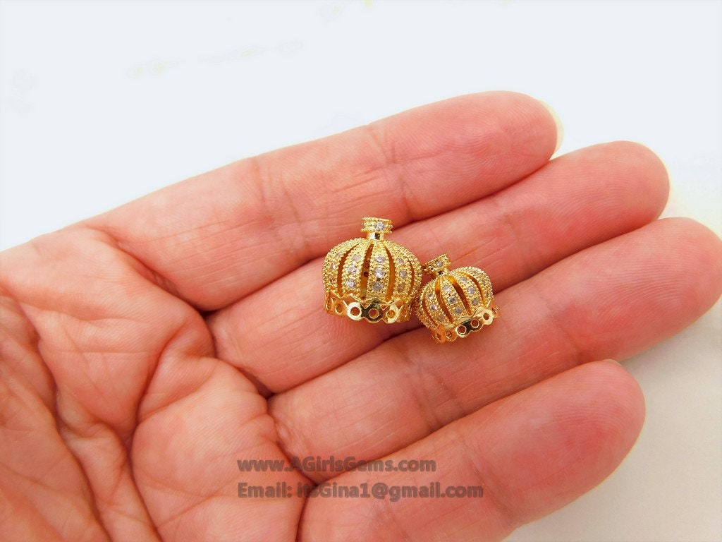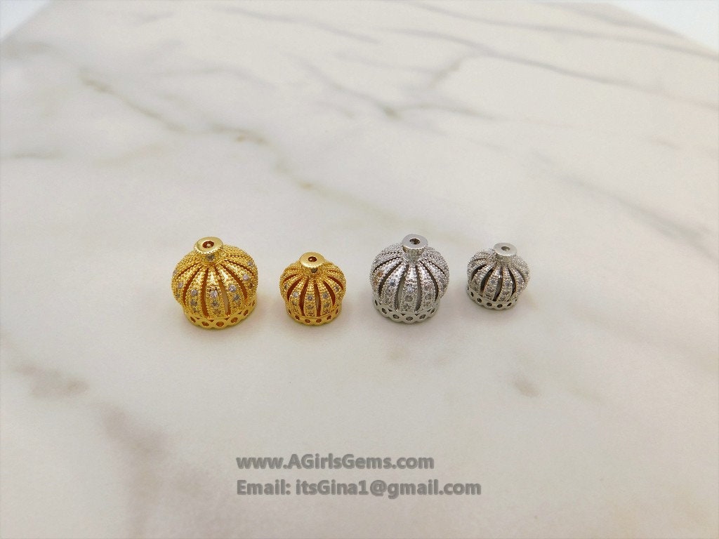 CZ Pave Tassel Cap/Pave Crown Tassel Cap Bead, Gold, Silver, Gunmetal Plated Micro Pave Bead CZ Tassel Focal Bead Caps
