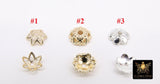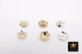 Gold Bead Caps, 8 mm Silver Bead End Caps Styles #3415, Round Petal Star Discs