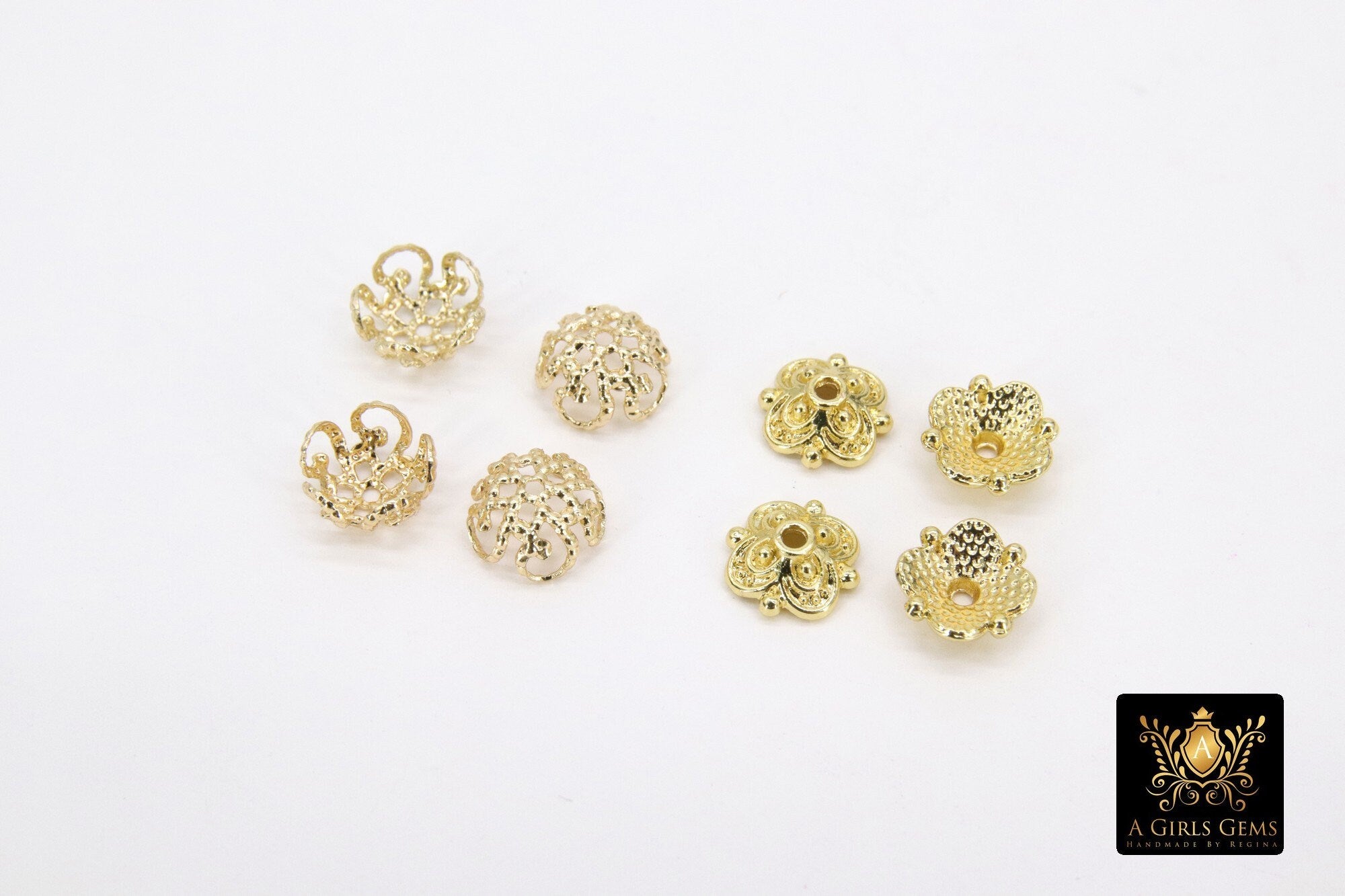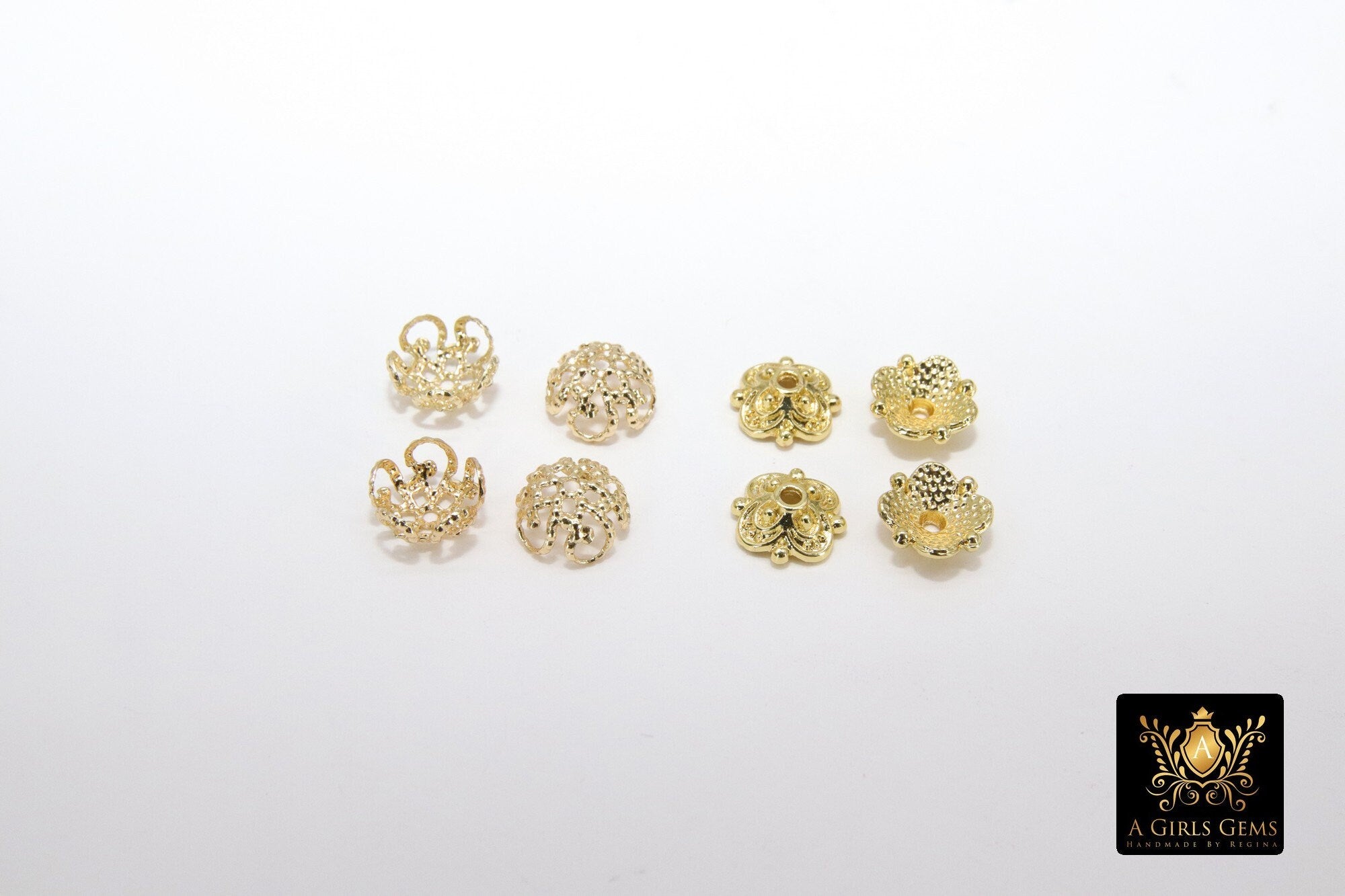Choice of Two Different Styles of Bead Caps in Gold 8 mm Styles, High Quality Smooth Plating