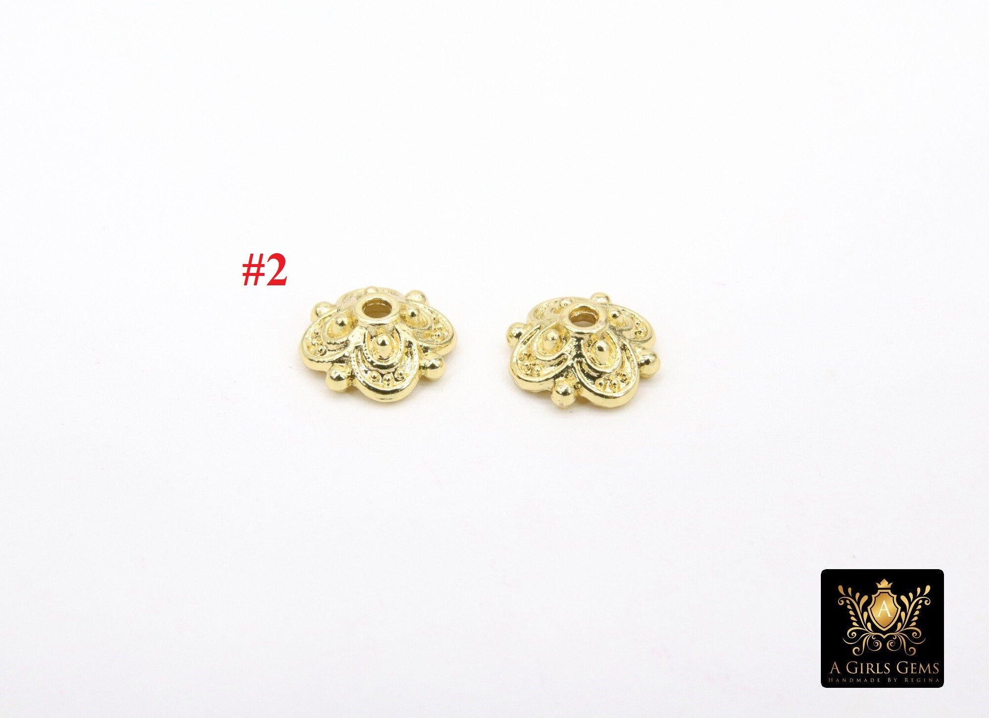 Gold Bead Caps, Bead End Caps, 8 mm End Cap Styles #3412
