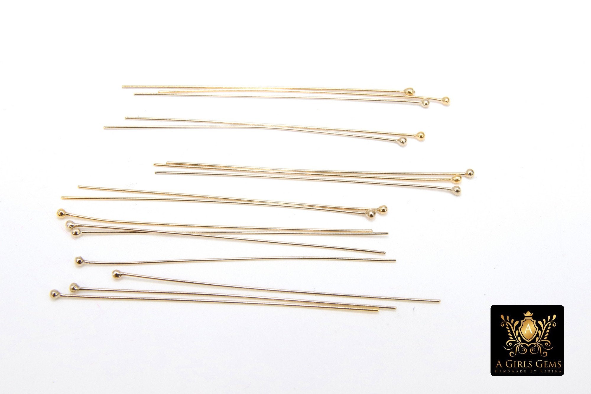 14 K Gold Filled Ball End Headpins, 14 20 Long Wire Round Ball Pins for Bead Inserts, AG 217
