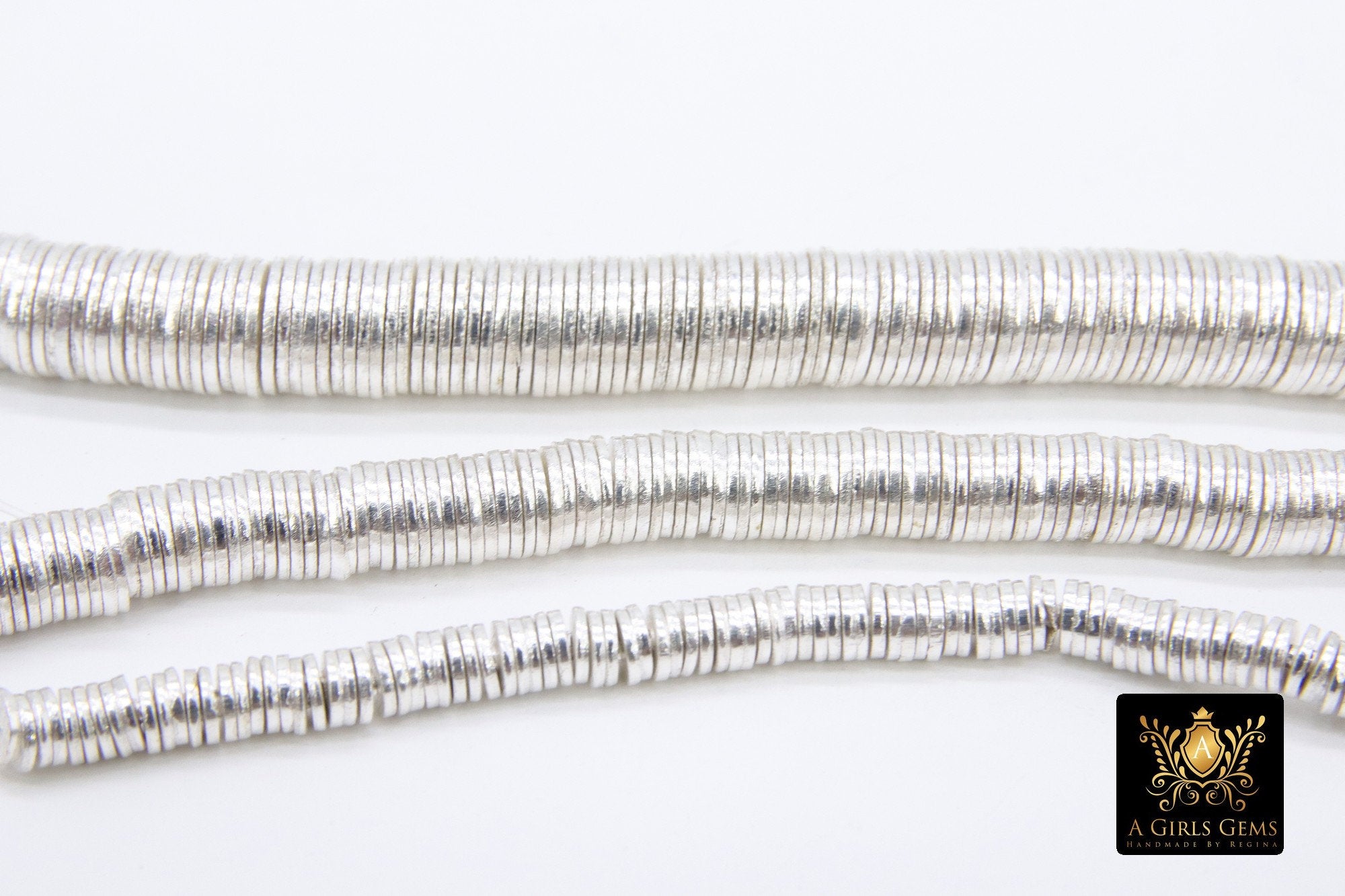 Brushed Silver Flat Metal Spacer Bead Jewelry Findings - Brushed Silver Heishi Bead