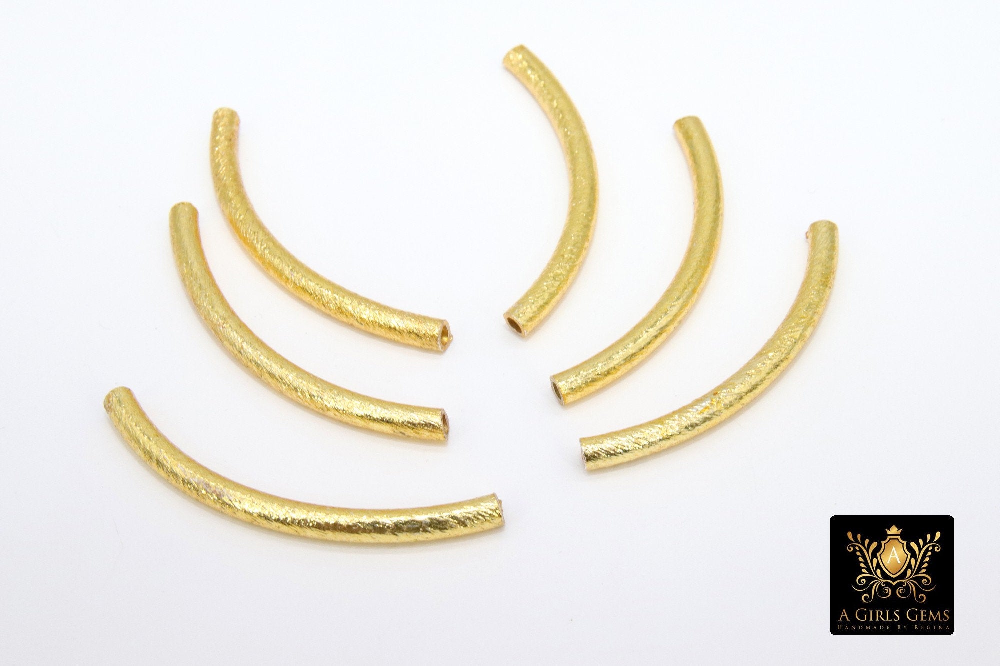 Brushed Silver Curved Long Tube Metal Spacer Bead Jewelry Findings