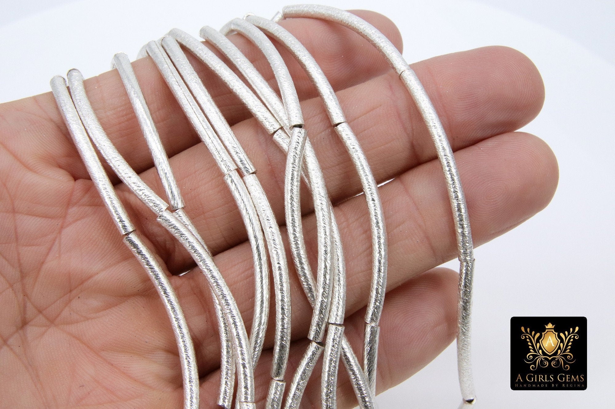 Silver Tube Spacer Beads, 10- 160 pcs Hollow Curved Brushed Silver Metal Bead #3142, 3 x 40 mm Findings