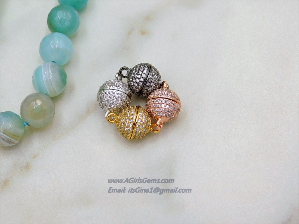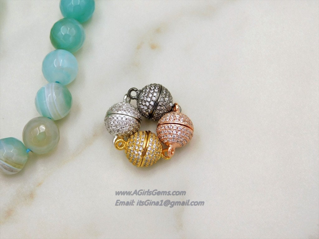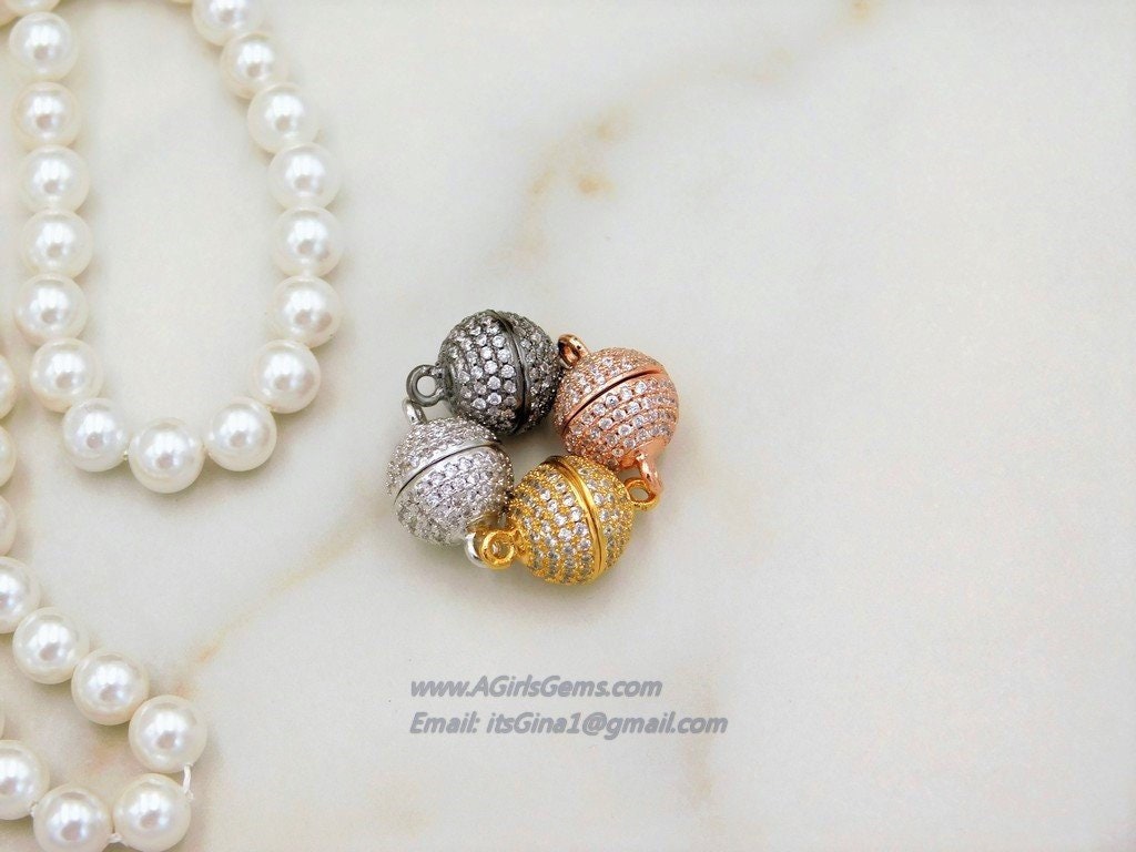10 mm CZ Round Magnetic Clasp, 6 mm Super Strong Micro Pave Clear Cubic Zirconia Clasp, 8 mm Bail Clasp