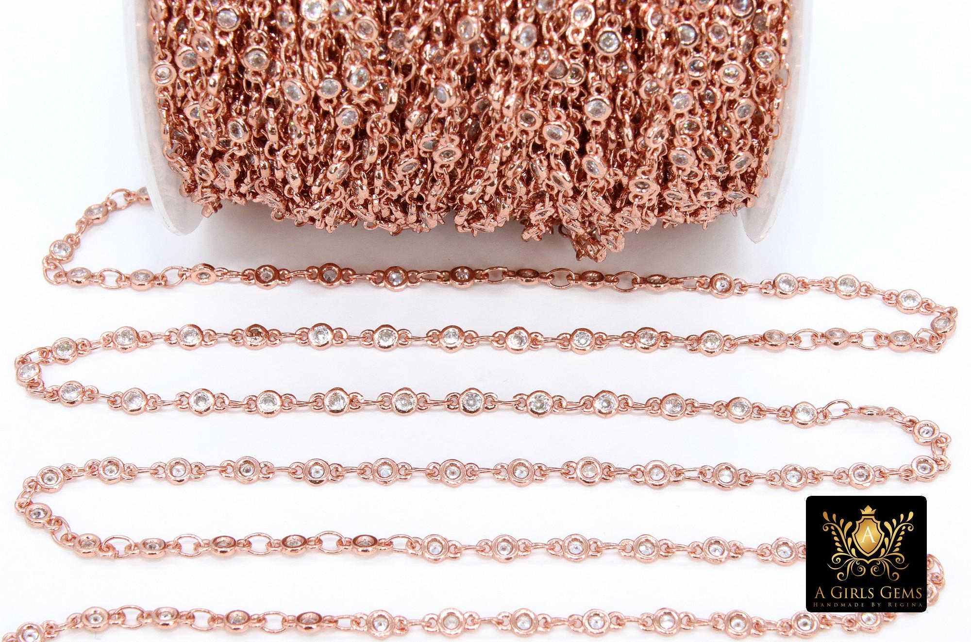 Gold CZ Chain By The Foot, 3 mm Silver CZ Rosary Chain, Genuine Dainty Rose Gold Cubic Zirconia Connector Linking Chains, By The Yard or Foot, DIY Bracelets or Necklaces.