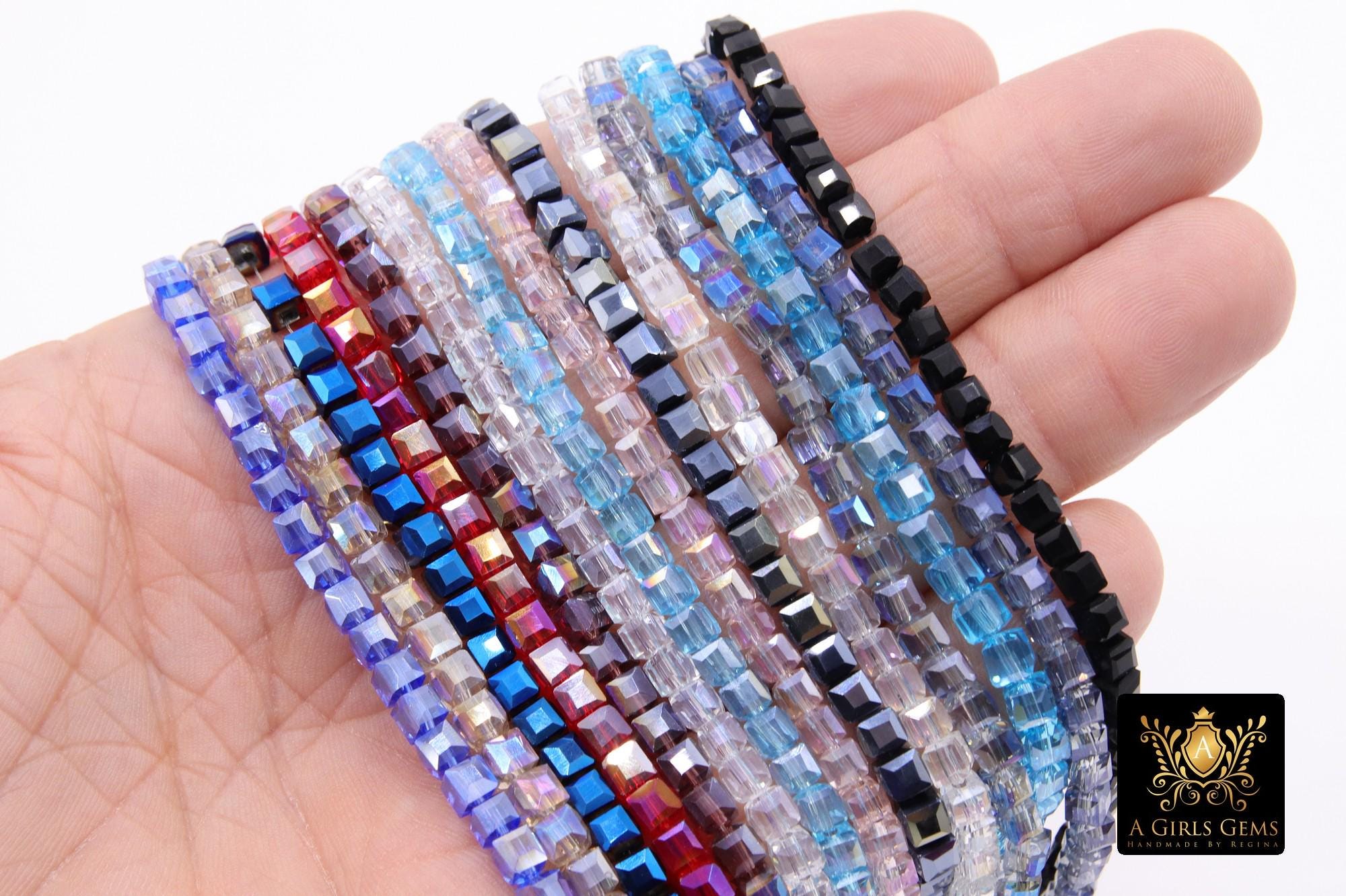 Crystal Cube Bead Strands, 4 mm Square Blue Red Beads BS #330, 4 mm Blue AB Crystals