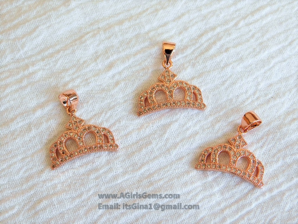 CZ Crown Charm Tiara Pendant Micro Paved Cubic Zirconia Rose Gold Plated 17 x 19 mm Charm Pendant Bracelet Necklace AGGSM265