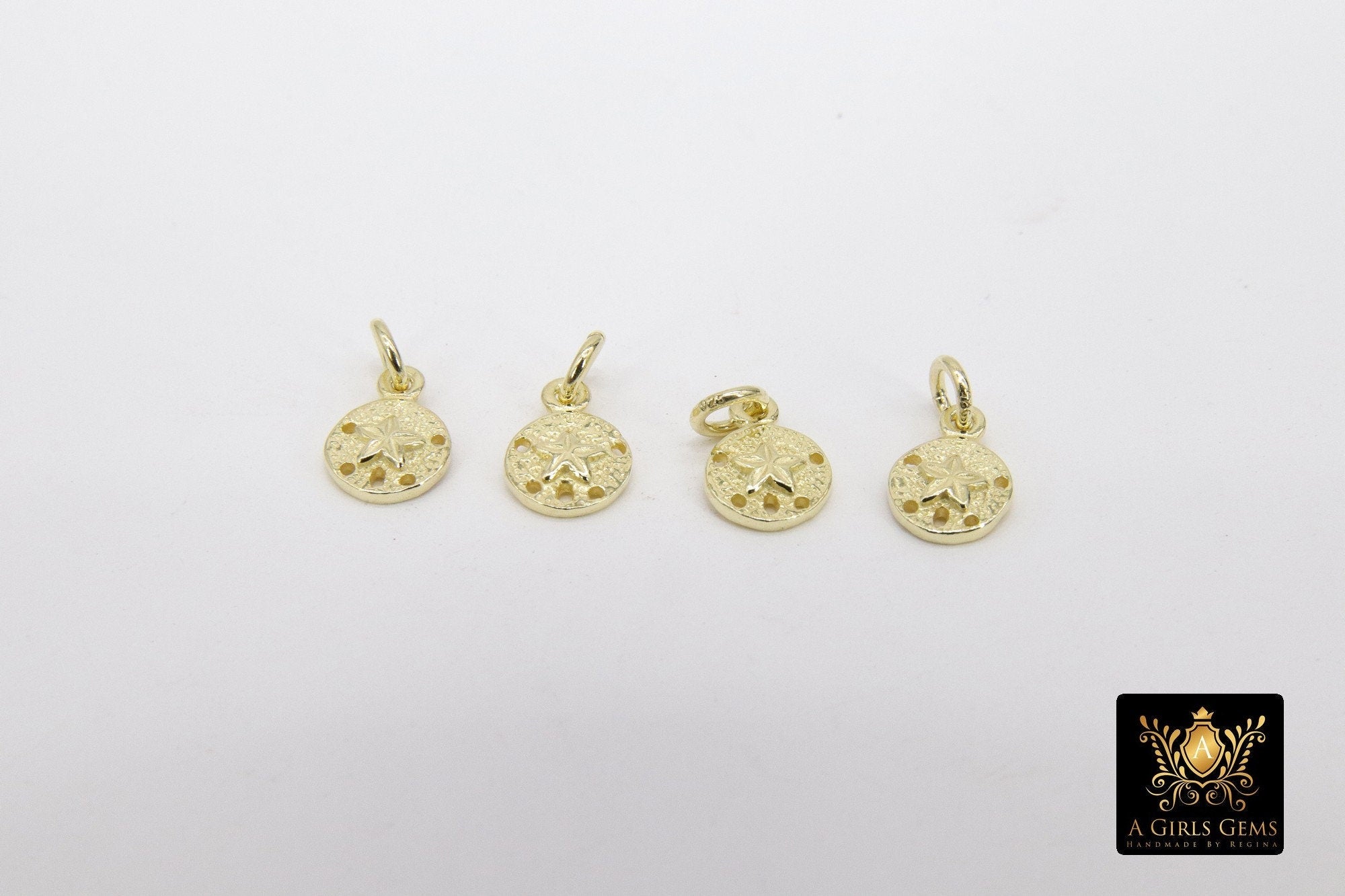 Genuine Gold Sand Dollar Charms, Tiny Beach Jewelry # 2414, 6 x 8 mm Gold Plated 925 Sterling Silver Starfish Nautical Ocean Dangles
