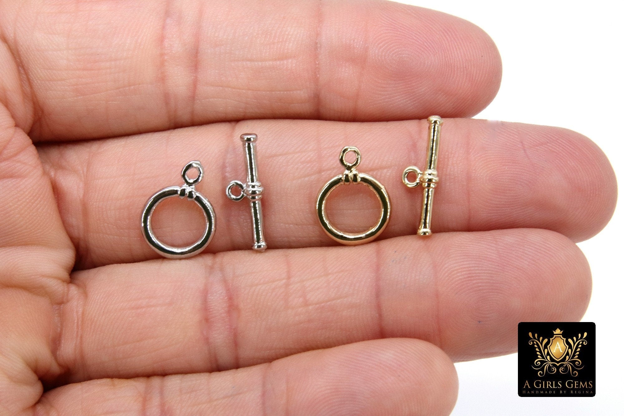 Gold and Silver Toggle Clasp Set, Lined 12 x 16.25 Toggle Ring #2367/2371, 18 mm Lined T Bar Jewelry Findings