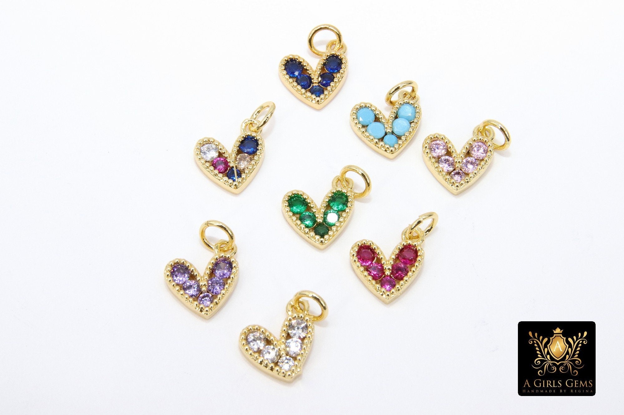 Gold CZ Beaded Heart Charms, 6 mm or 10 mm Minimalist Tiny Charms #548, Blue Turquoise Black Pink Green Purple Heart Charms