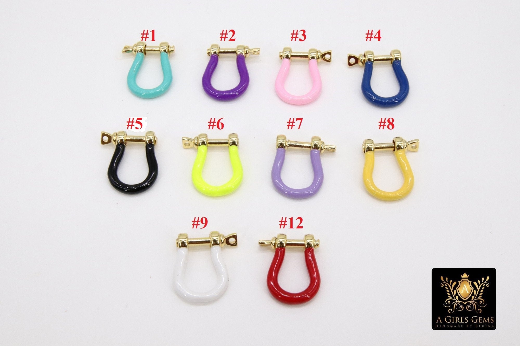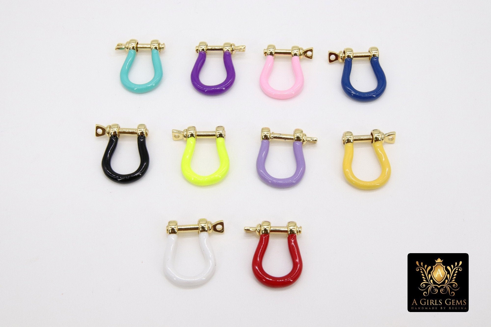 Gold Shackle Clasp, 13 x 17 mm Jewelry Tiny Clasps in Gold Enamel #917, Small Bracelet Connector Screw Clips
