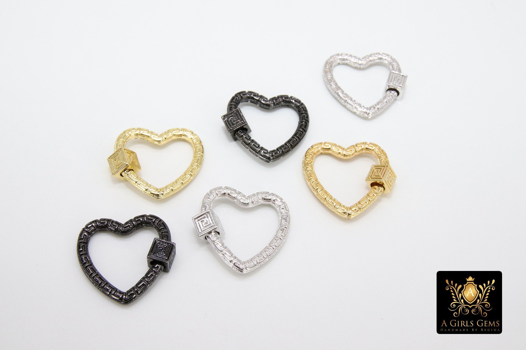 Gold Square Screw Clasps, Silver Textured Scroll Interlocking Necklace Connectors #2633, Black Screw Clasp Carabiner