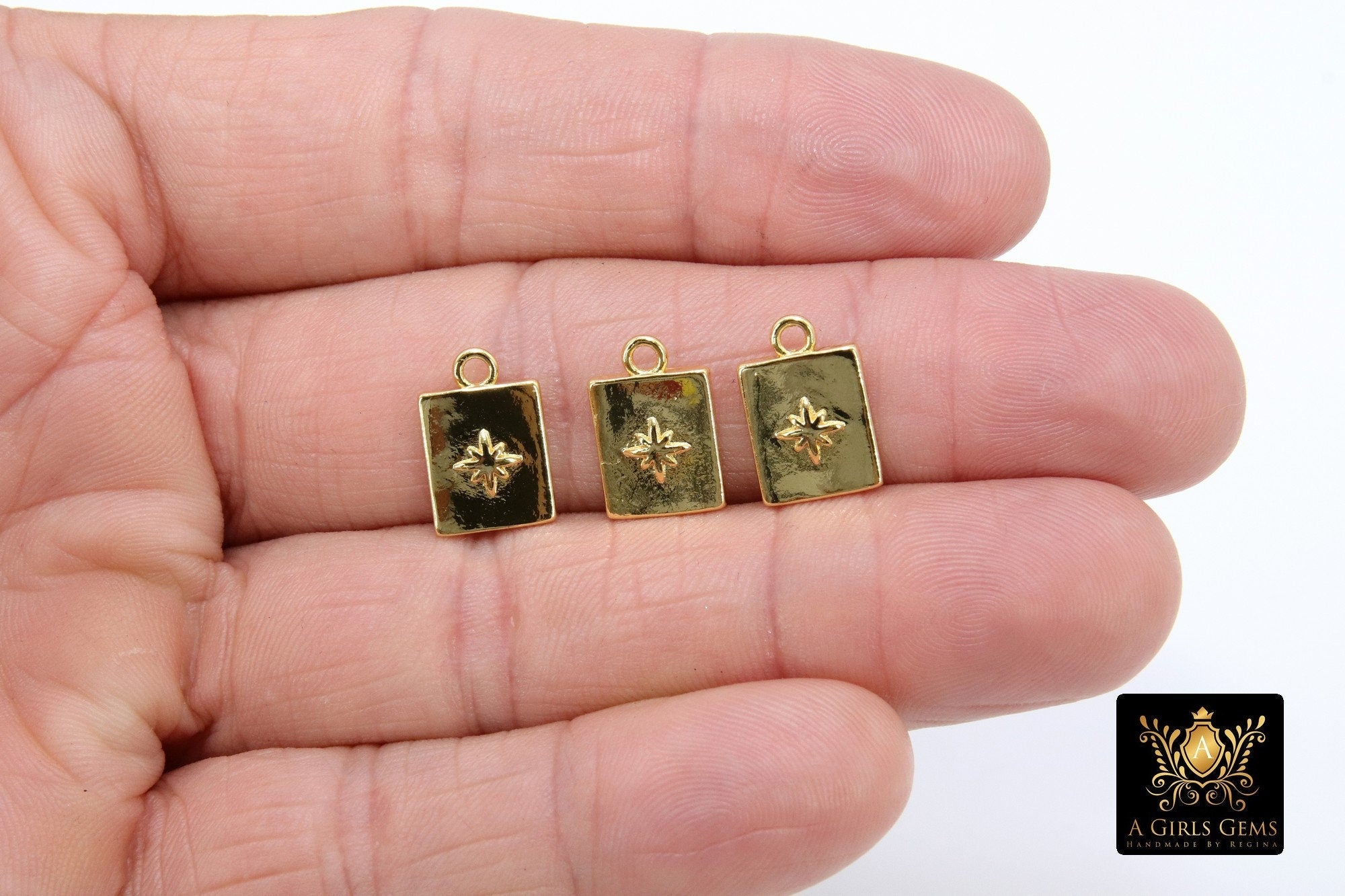 Gold Star Padlock Charms, Small Moon Box Pendant #210, Starburst Necklace