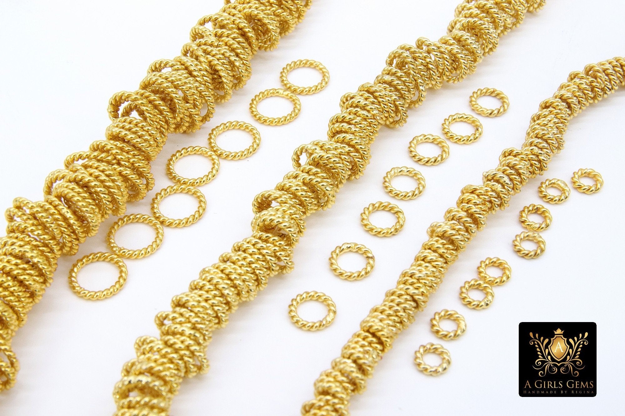 Gold Twist Spacer Beads, 20-160 pcs Round Brushed Gold Soldered Jump Rings # 2928, Flat Bumpy Ring