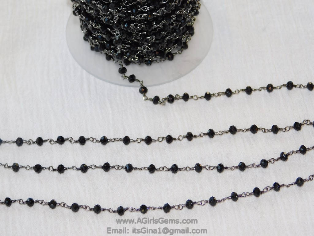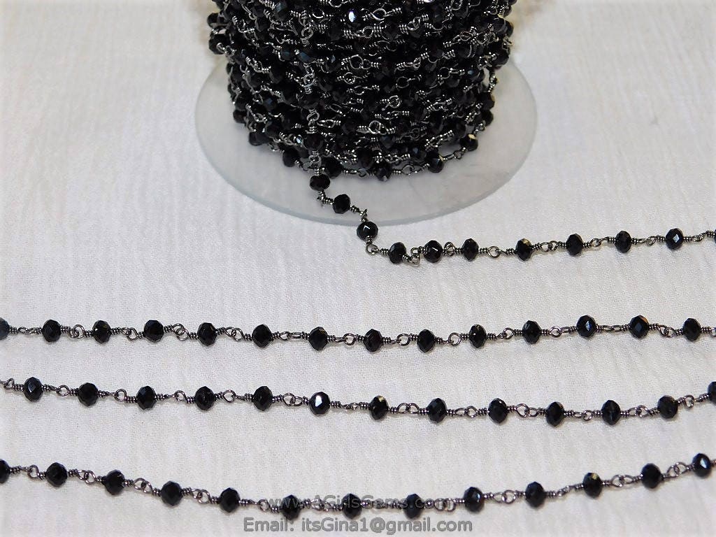 Gunmetal Black Rosary Chain, 4 mm Black Wire Wrapped Bead Chains CH# 345, 3 5 10 feet Roll Bulk Plated Rosary Chain Beaded Rosary