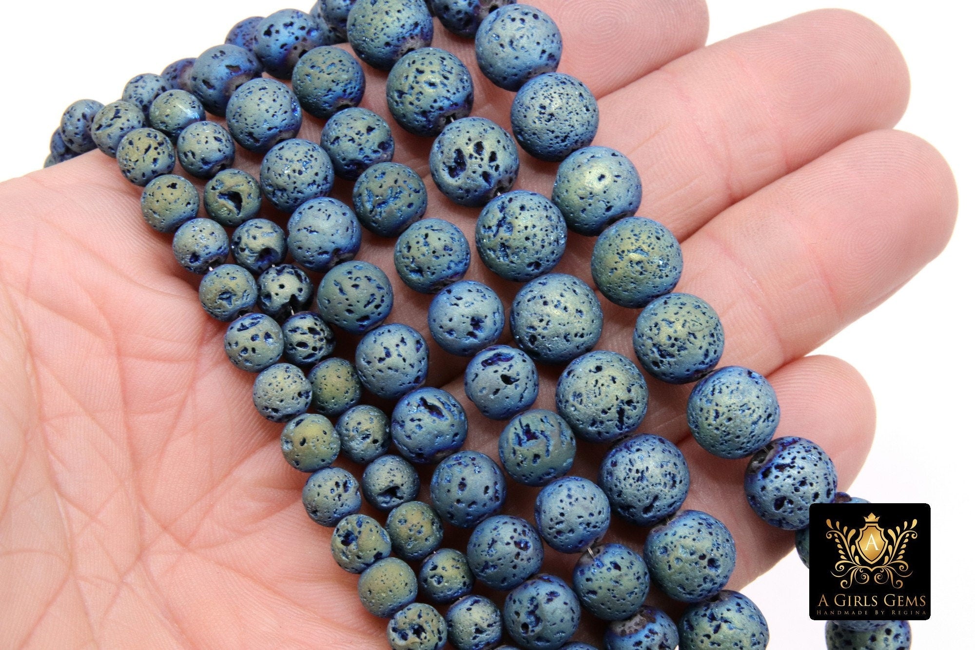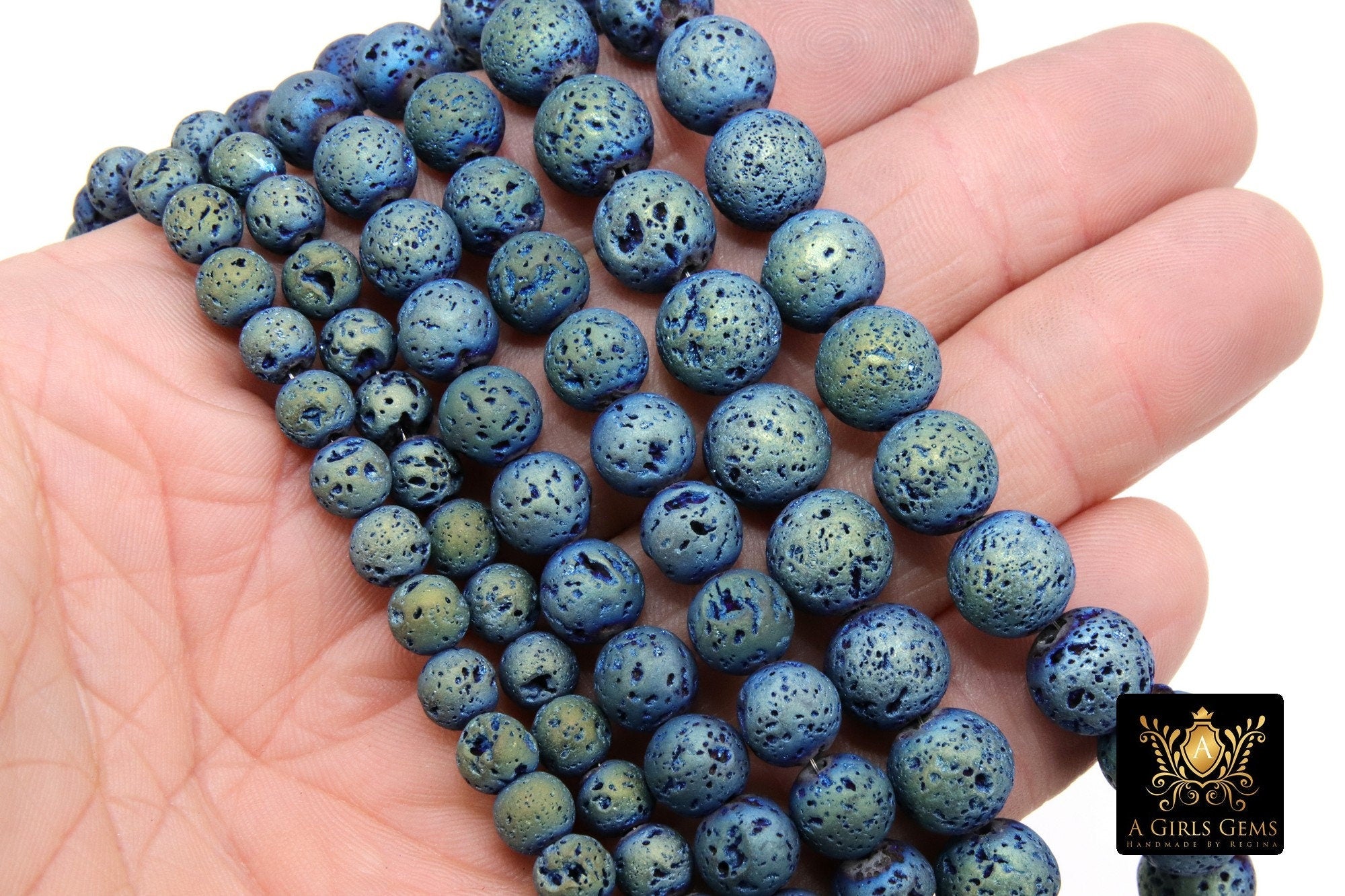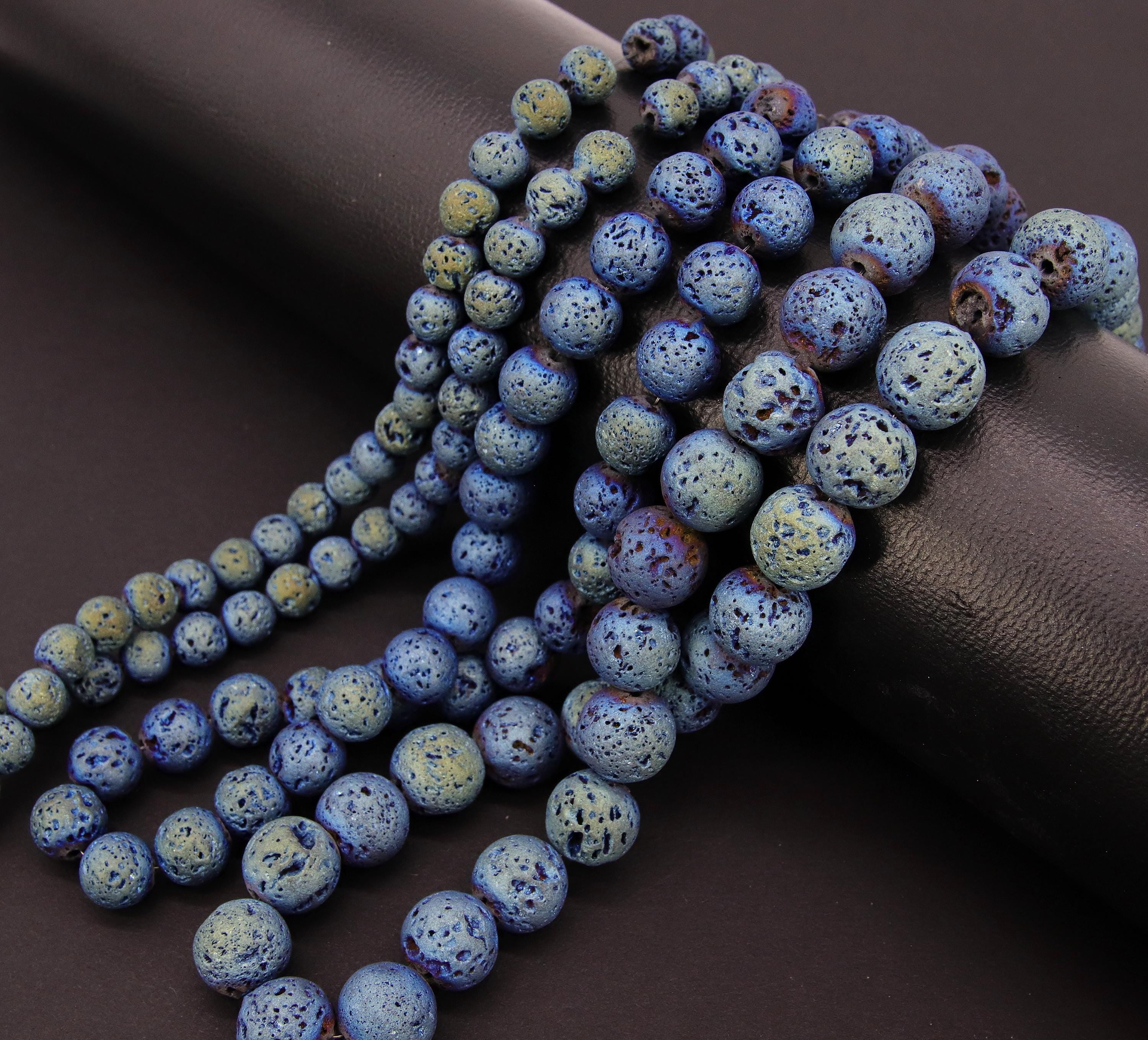 Matte Blue Plated Lava Rock Beads, Shimmery Titanium Textured Beads BS #217 sizes 6 mm 8 mm 10 mm in 15 inch Strands