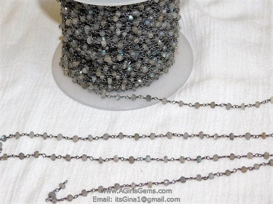 Natural Labradorite Gemstone Rosary Gold Chain, Gray 4 mm Jewelry Chain CH #337, 1 5 10 feet Religious Chain