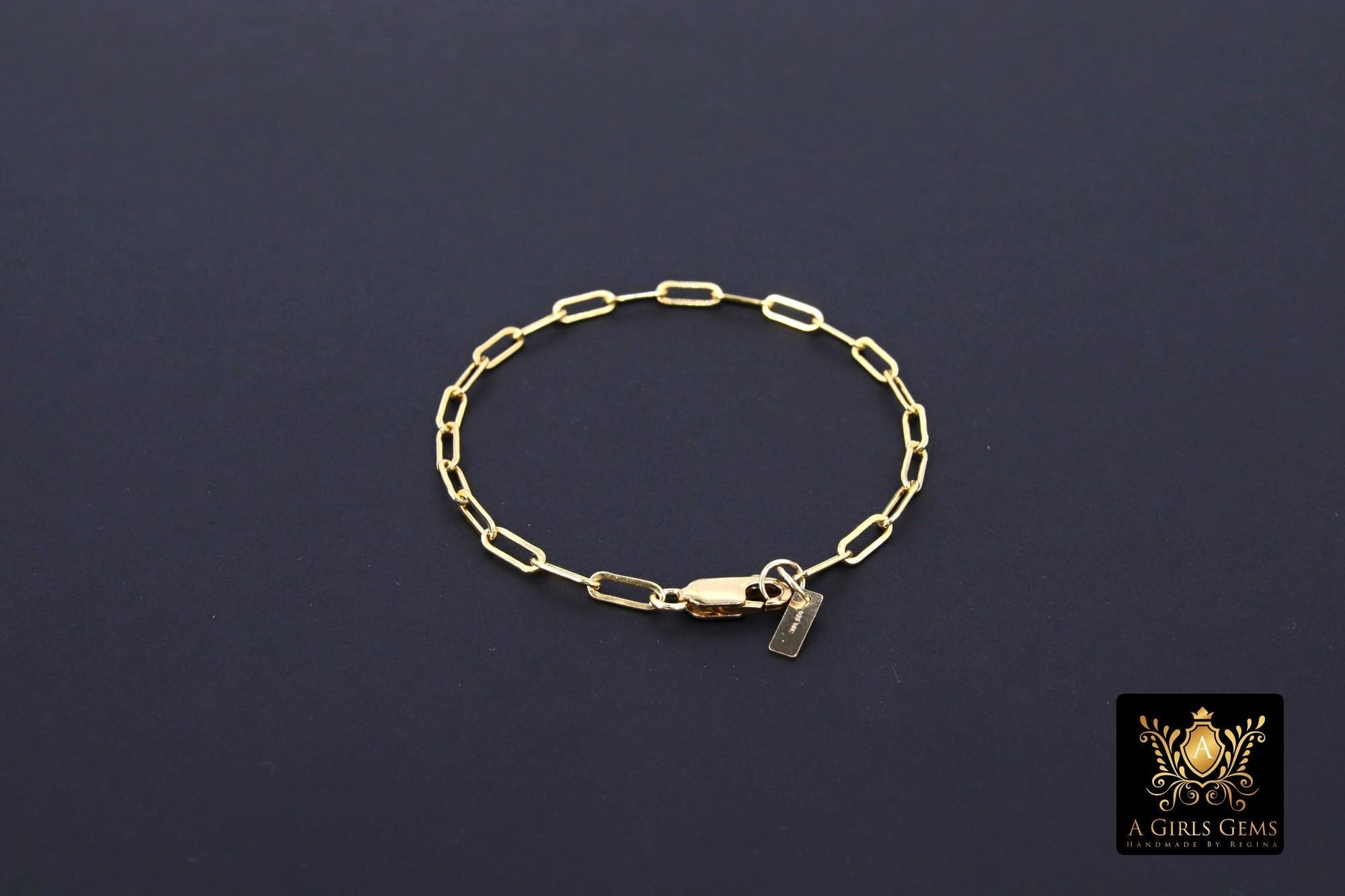 14 K Gold Filled Paperclip Chain Bracelet, Dainty Rectangle Chain Link Bracelet, Stamped 14/20