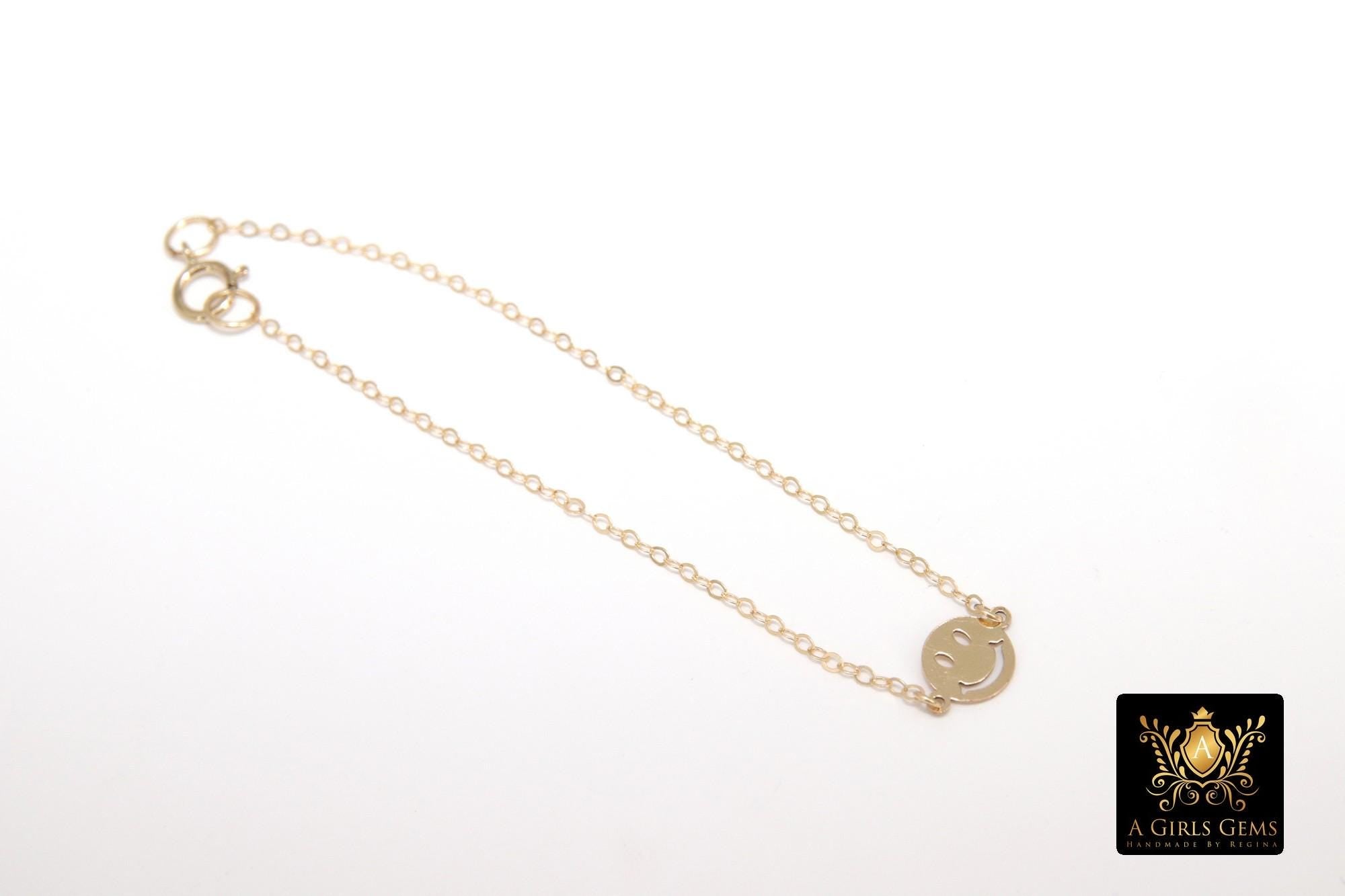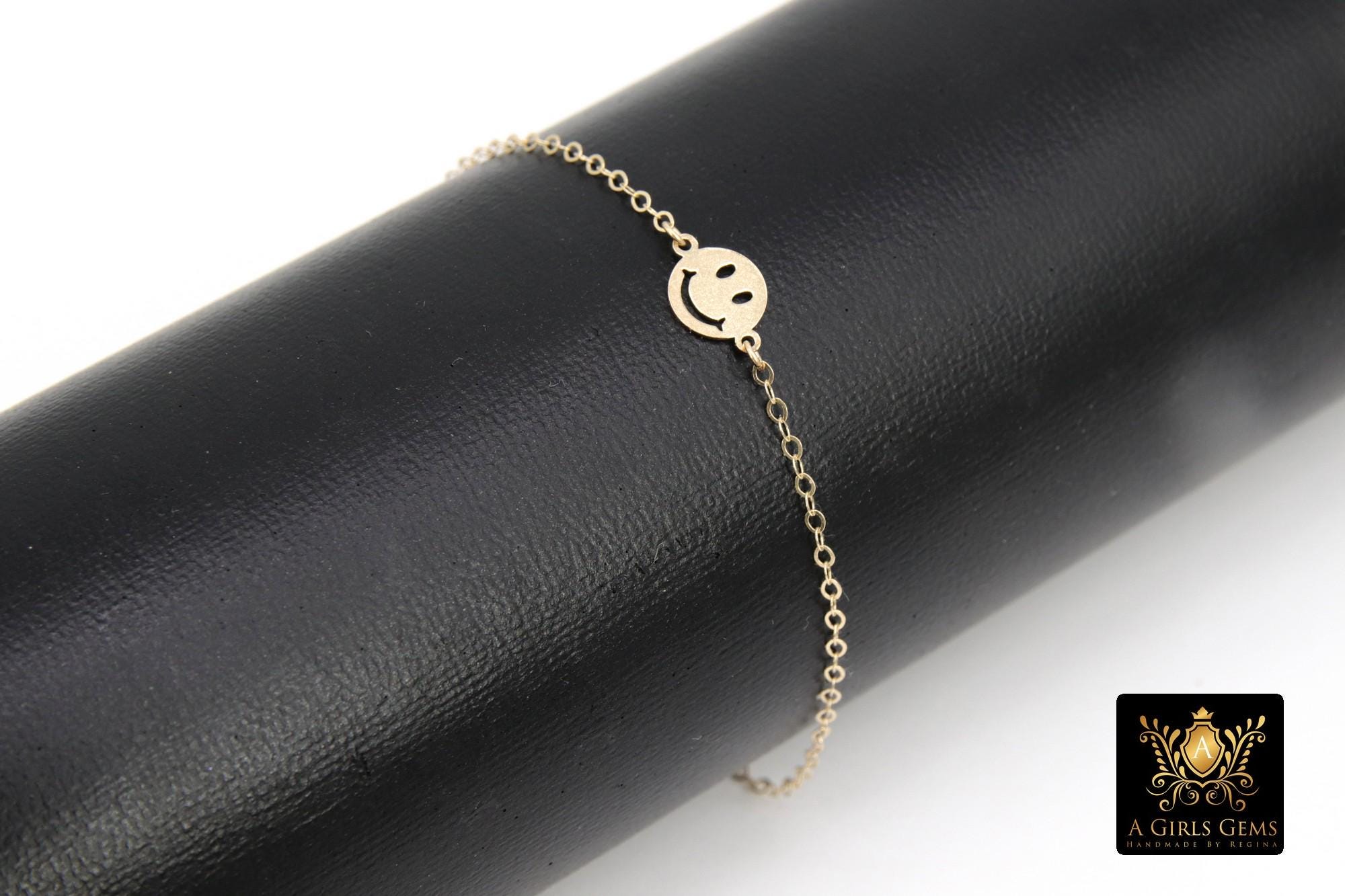 14 K Gold Filled Smiley Face Bracelet, 925 Sterling Silver Happy Face, Everyday Chain Jewelry