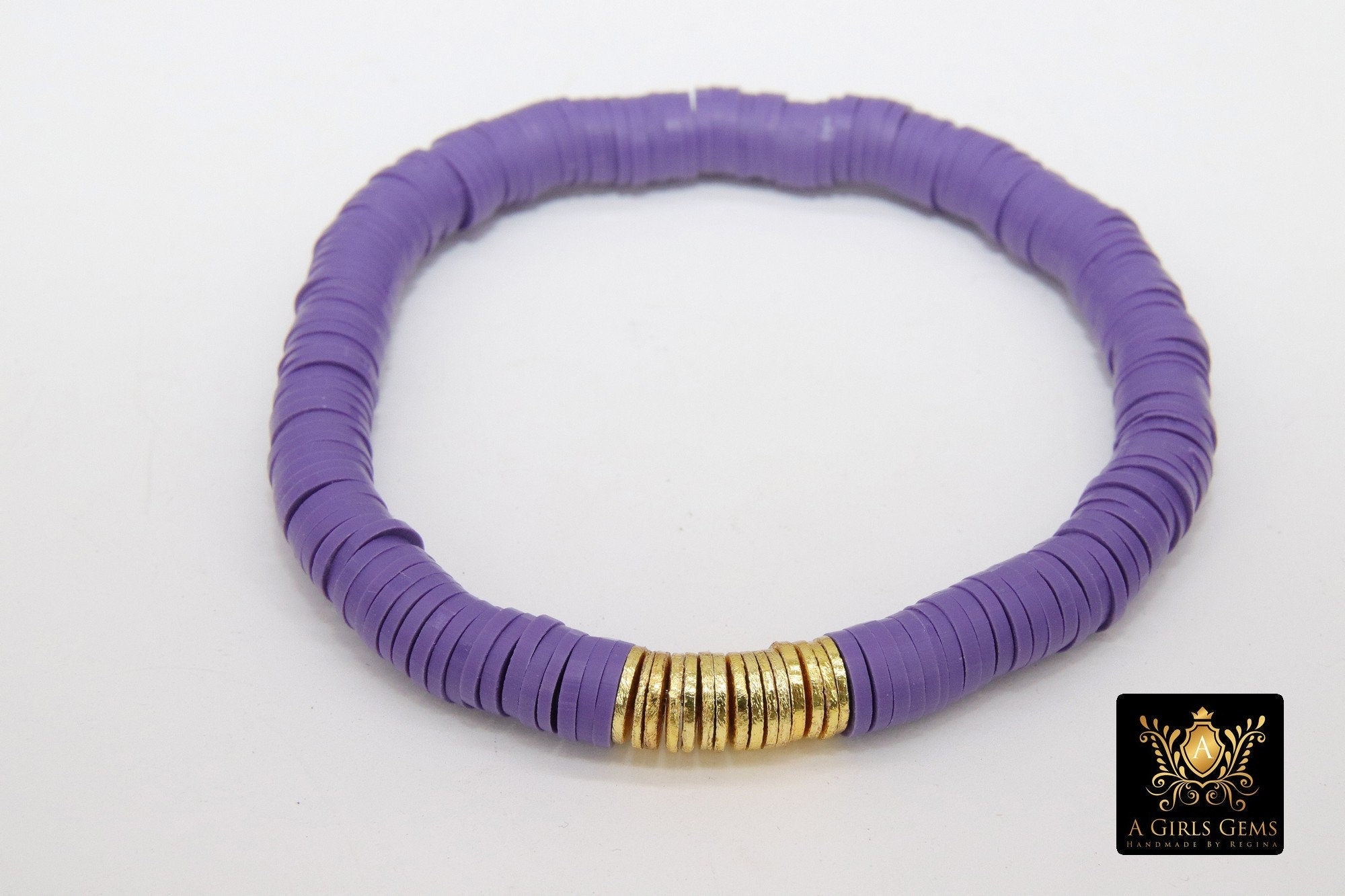 Purple and Gold Bracelet in Heishi Beads by Regina Harp Designs