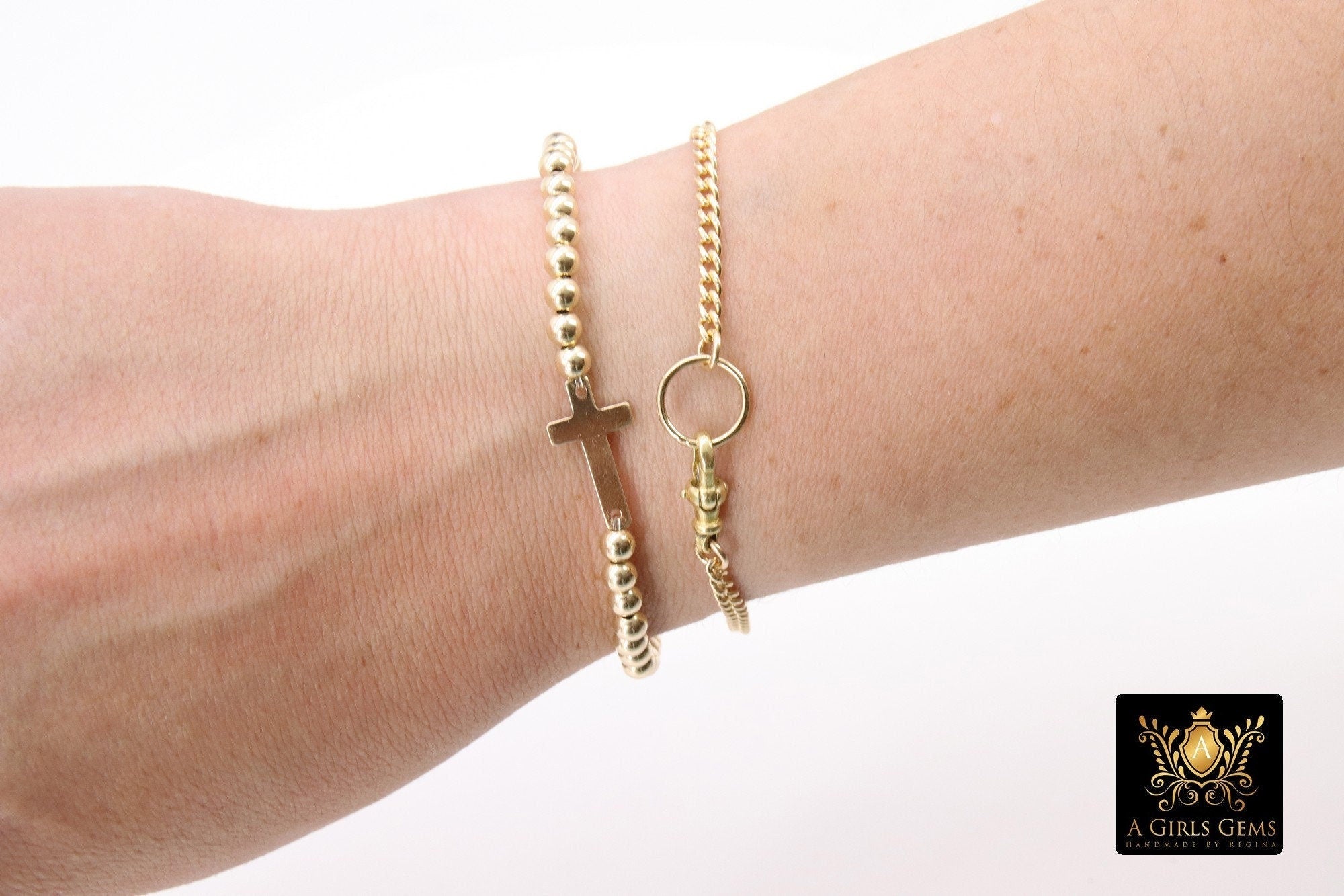 14K Gold Filled Curb Chain Bracelet, US 14 K Gold Filled Swivel Fob 3.5 mm Bracelet #2626, Statement Bracelet