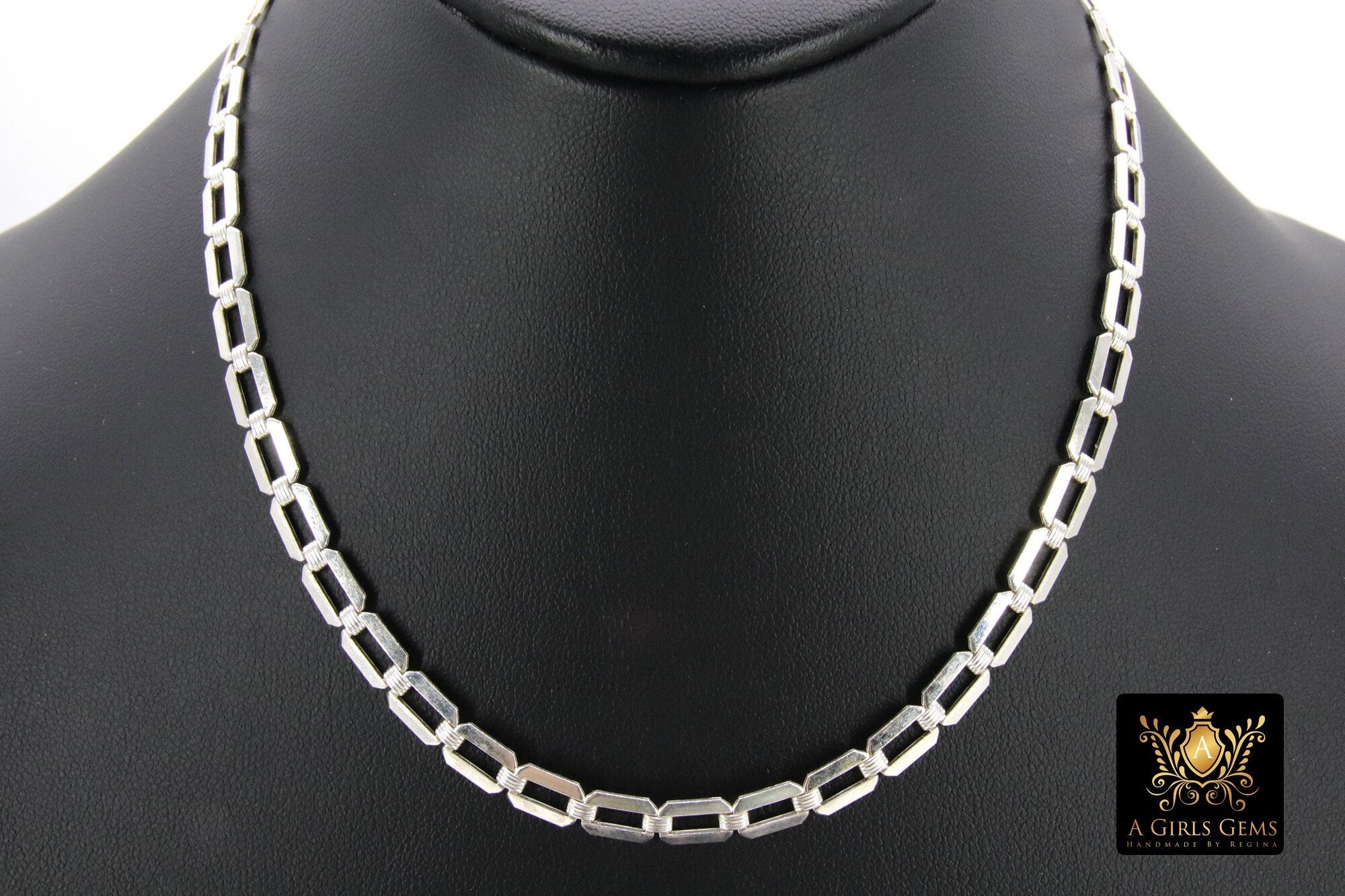 925 Sterling Silver Necklace, Rectangle Chunky Designer Chain Choker #2626, Silver Large Paperclip Link Choker