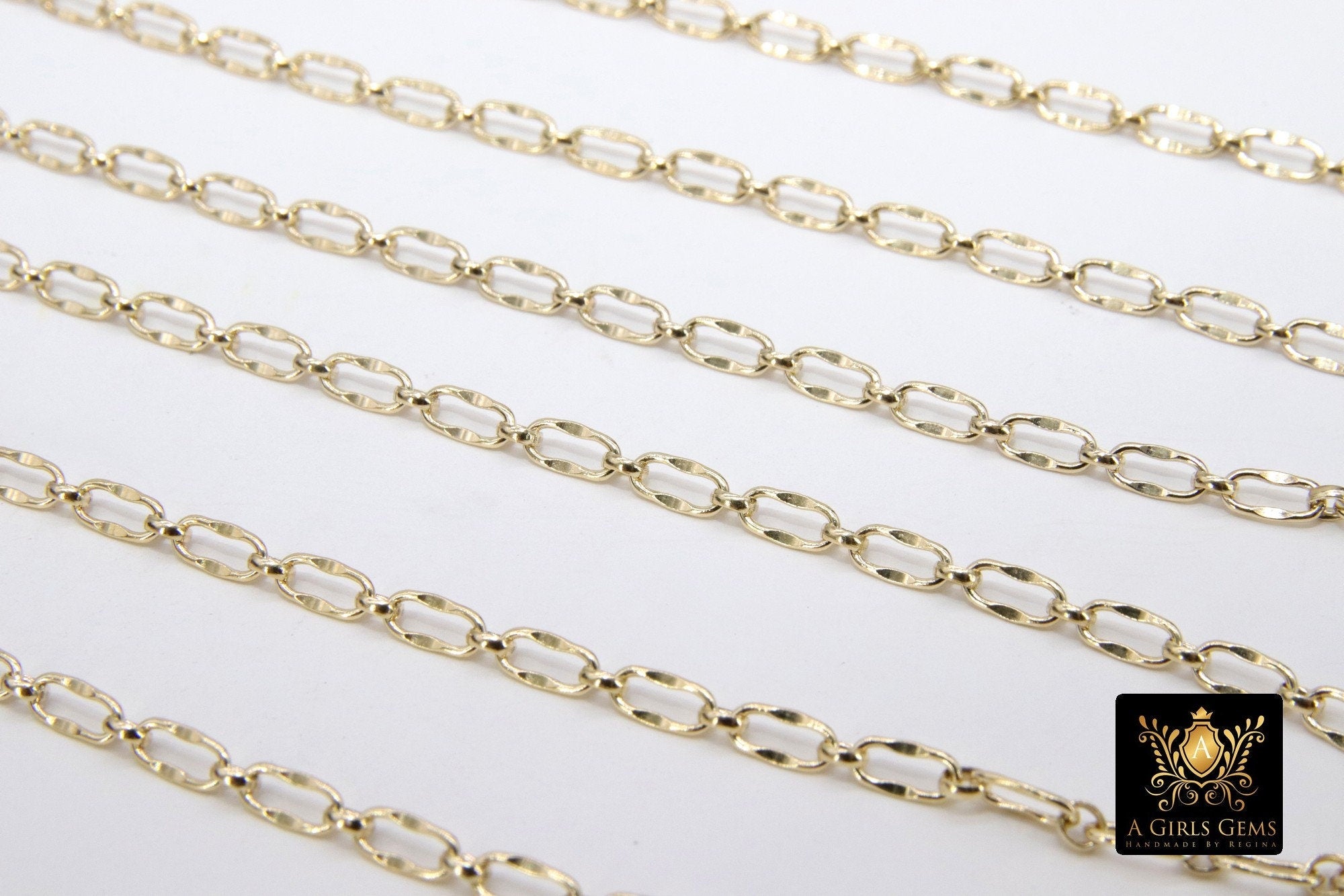 14 K Gold Filled Dapped Paperclip and Rolo Chains, Elongated Oval, Rectangle Hammered Chains