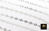 925 Sterling Silver Diamond Shape Chains, 4.1 mm Starburst Sequin CH# 876, Unfinished 6.1 mm Chains