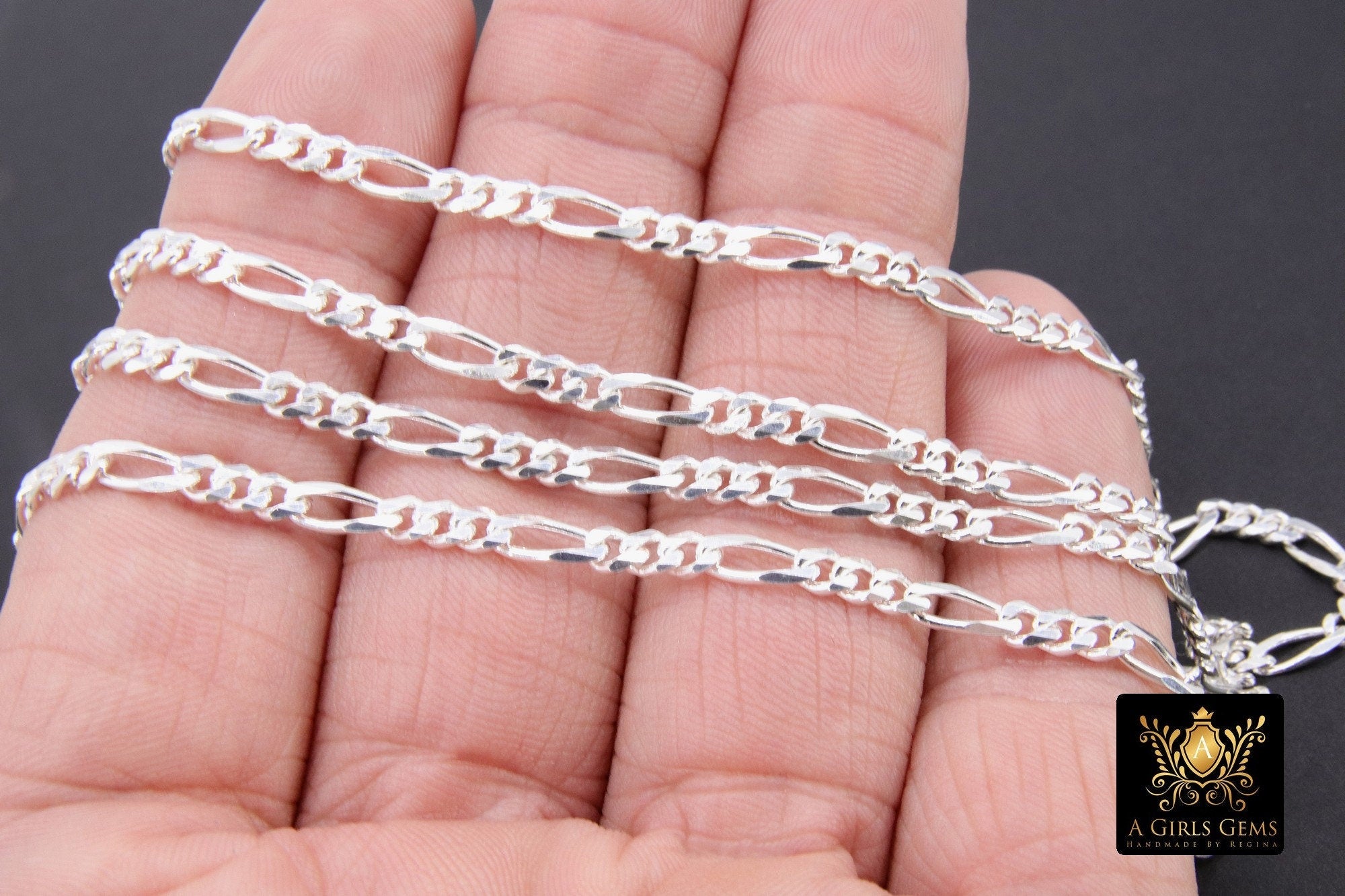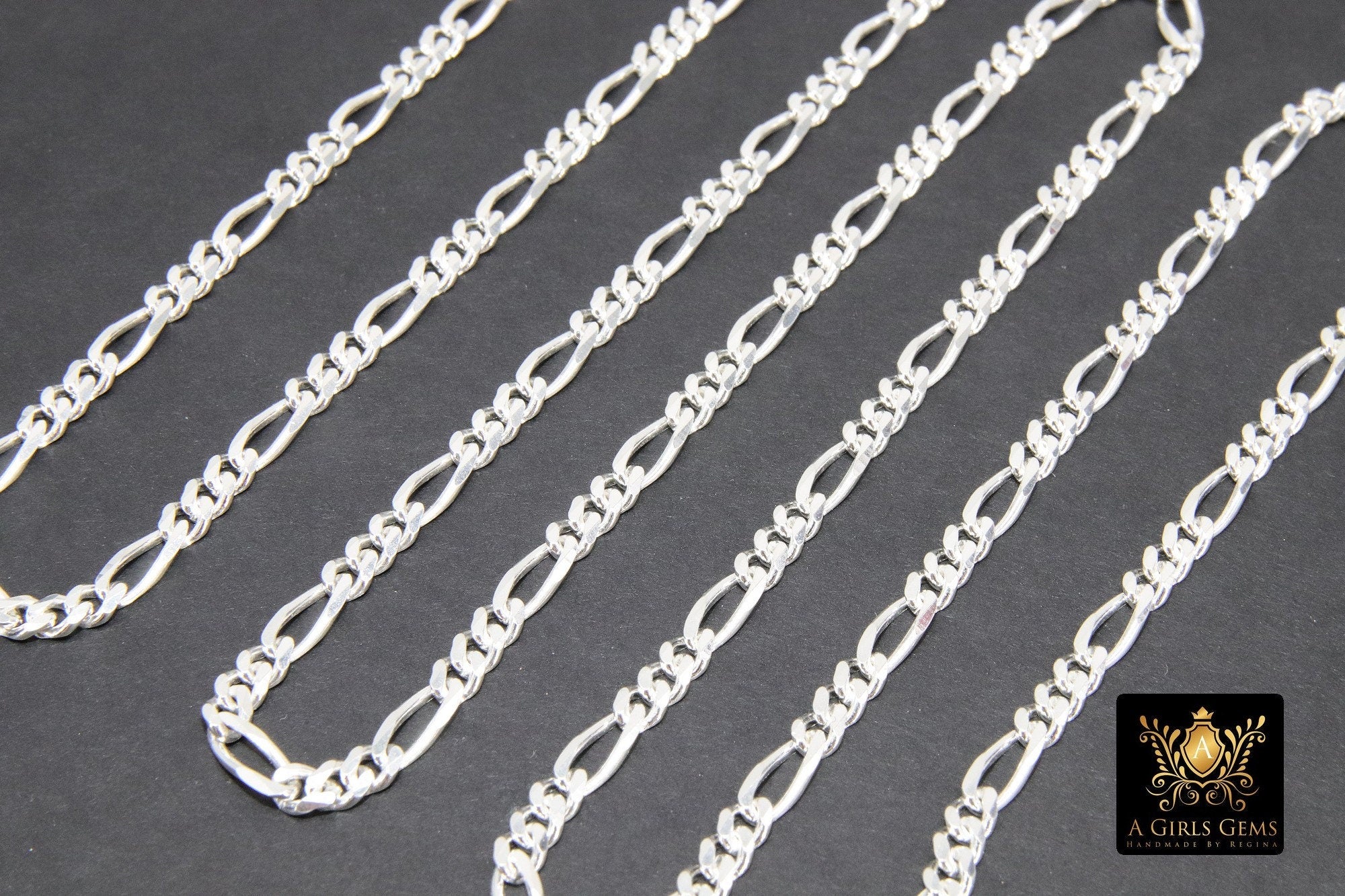 925 Sterling Silver Figaro Chains, 8.6 x 3.5 mm Large Diamond Cut Chain CH #846, By Foot
