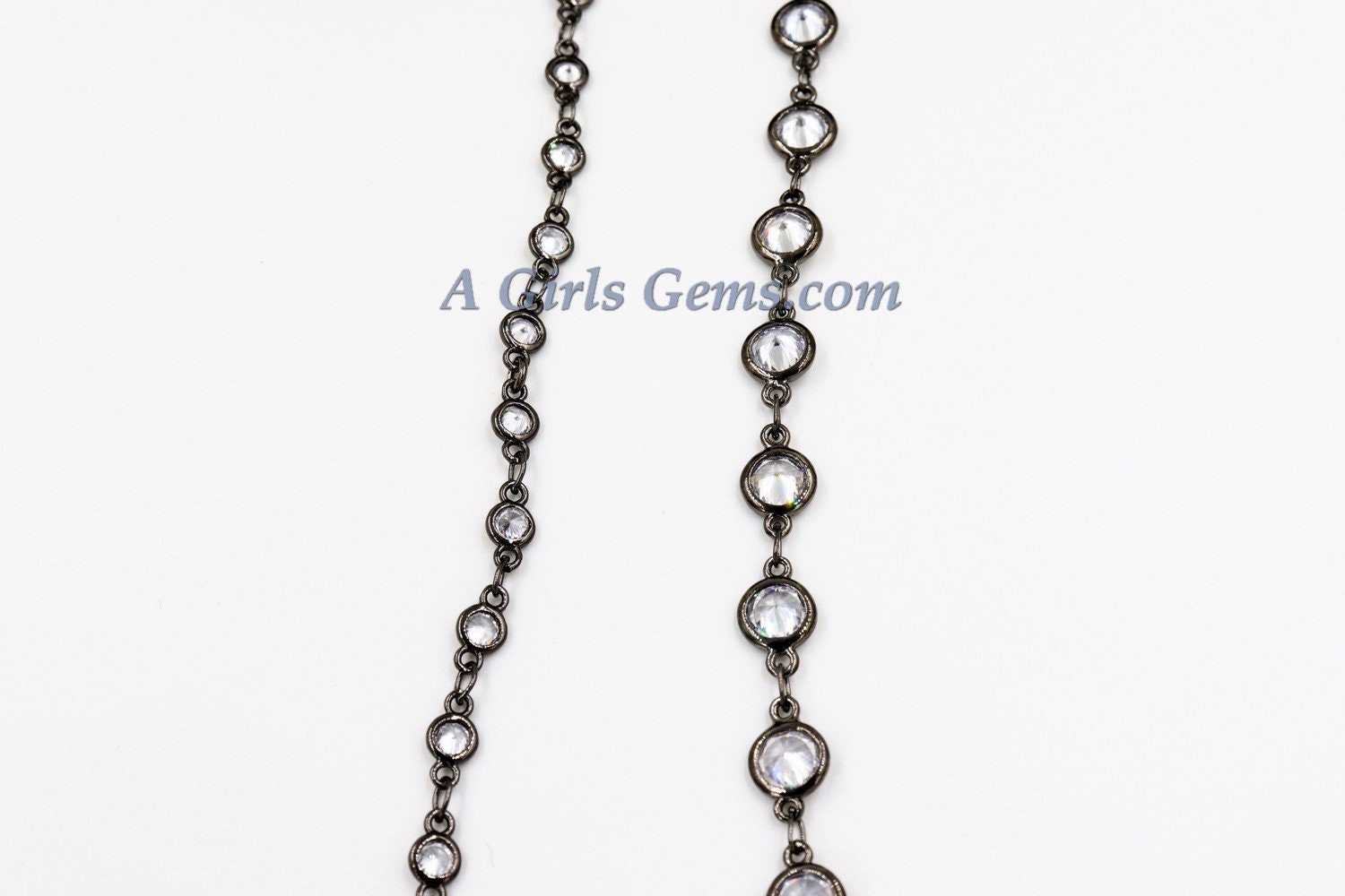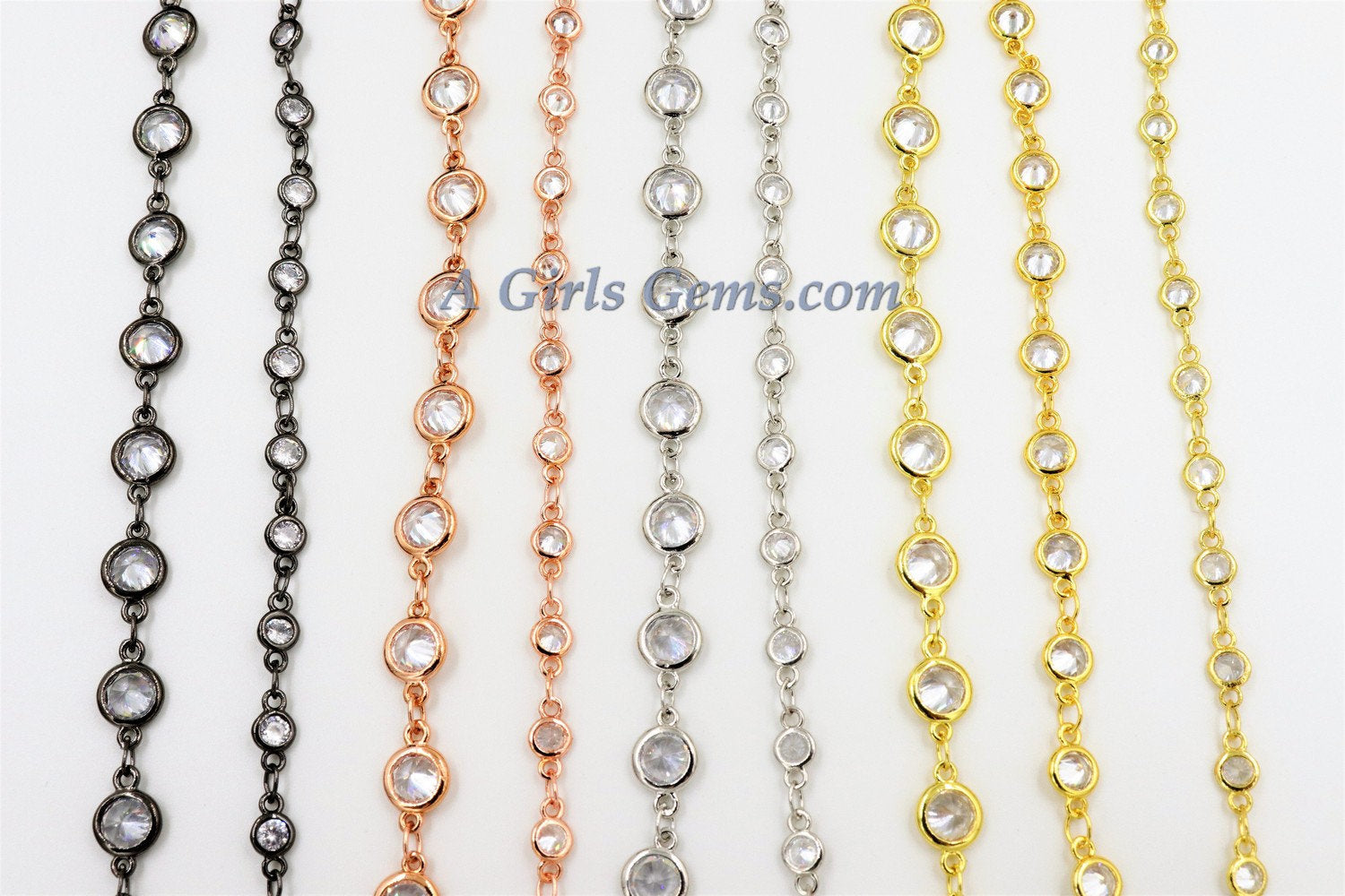 CZ Chain By The Yard, 5 mm Genuine CZ Bezel Chain Gold Plated Bezel Link CZ Connector Linking Chains