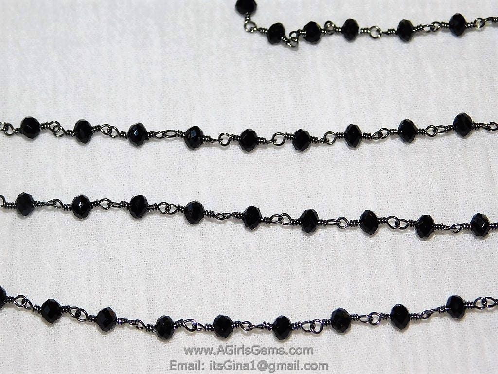 Gunmetal Black Rosary Chain, 4 mm Black Wire Wrapped Bead Chains CH #345, 3 5 10 feet Roll Bulk Plated Rosary Chain Beaded Rosary