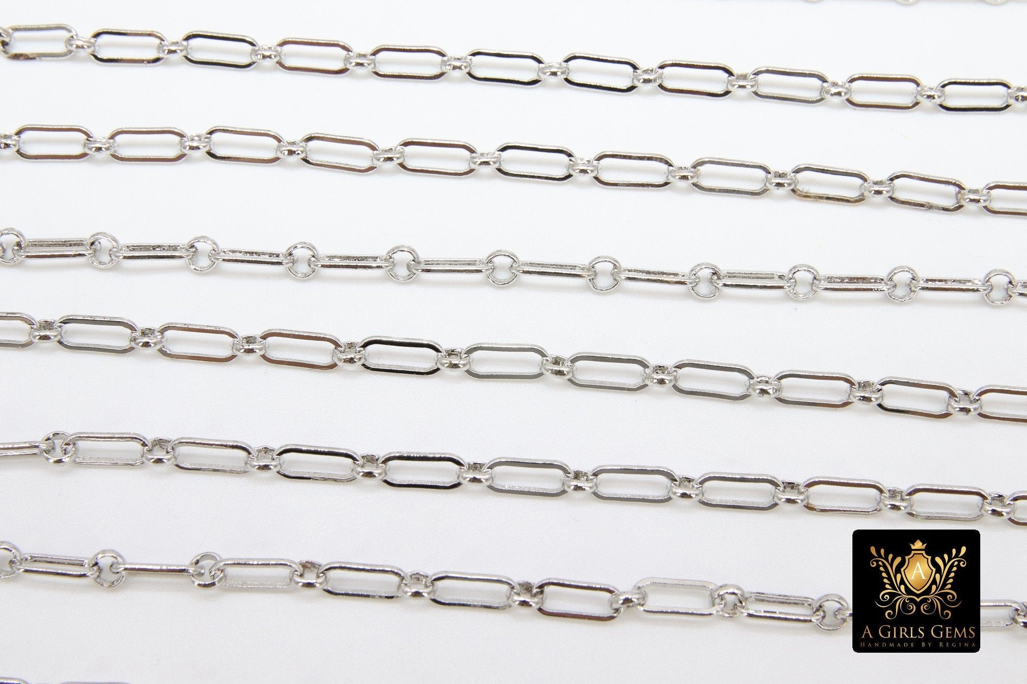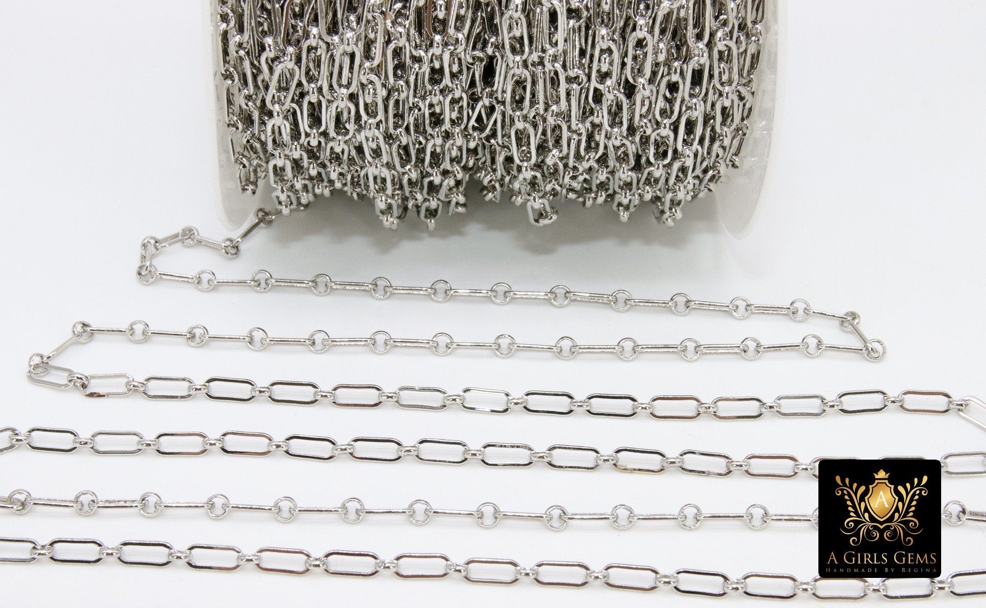 Rectangle Drawn Chain, Unfinished Silver Paper Clip Chains CH #129, Long and Short Necklace Rolo Cable Chains in 9 mm