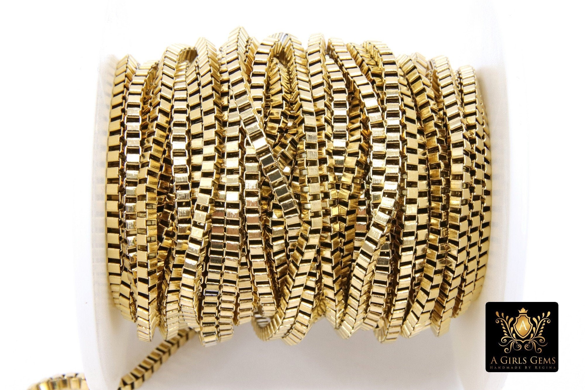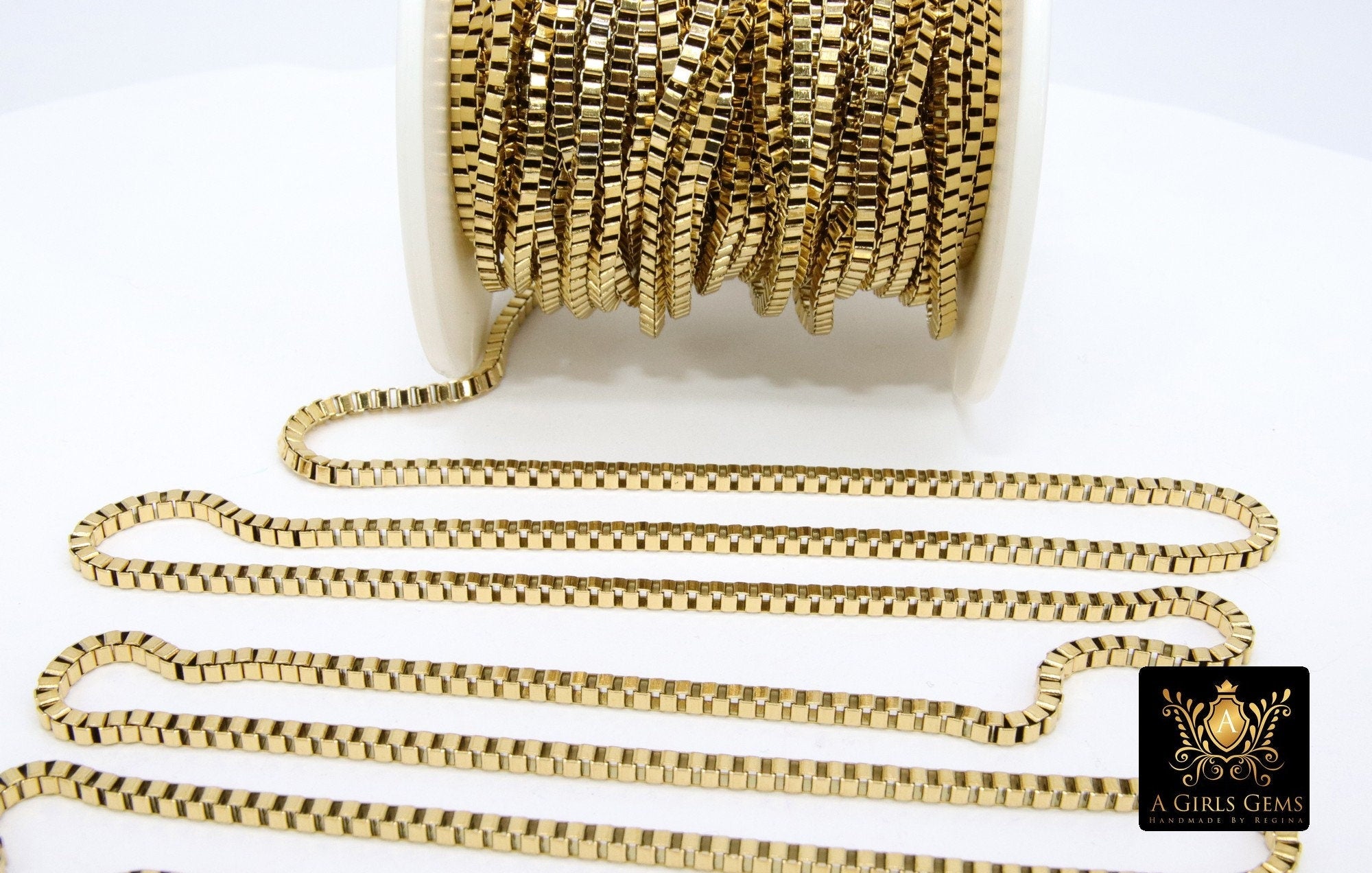 Gold Stainless Steel Chains are in 2.5 x 2.5 mm. Fits a 22 Gauge Jump Ring.