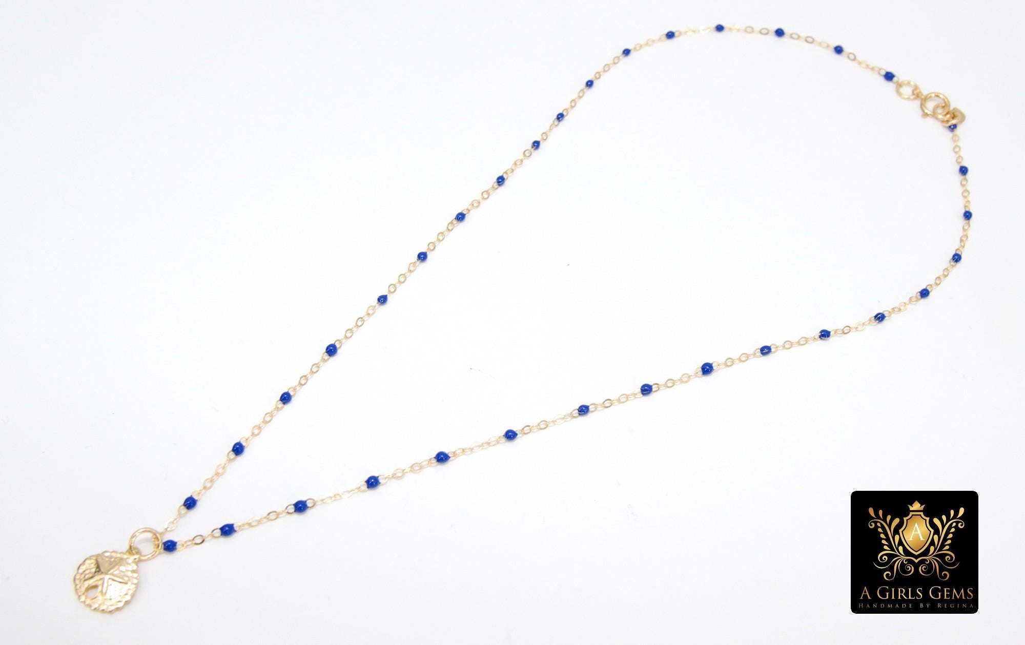 14 K Gold Filled Dainty Sand Dollar Satellite Necklace #2626, Dainty Enamel Beach Choker, 10 Beaded Enamel Color Choices
