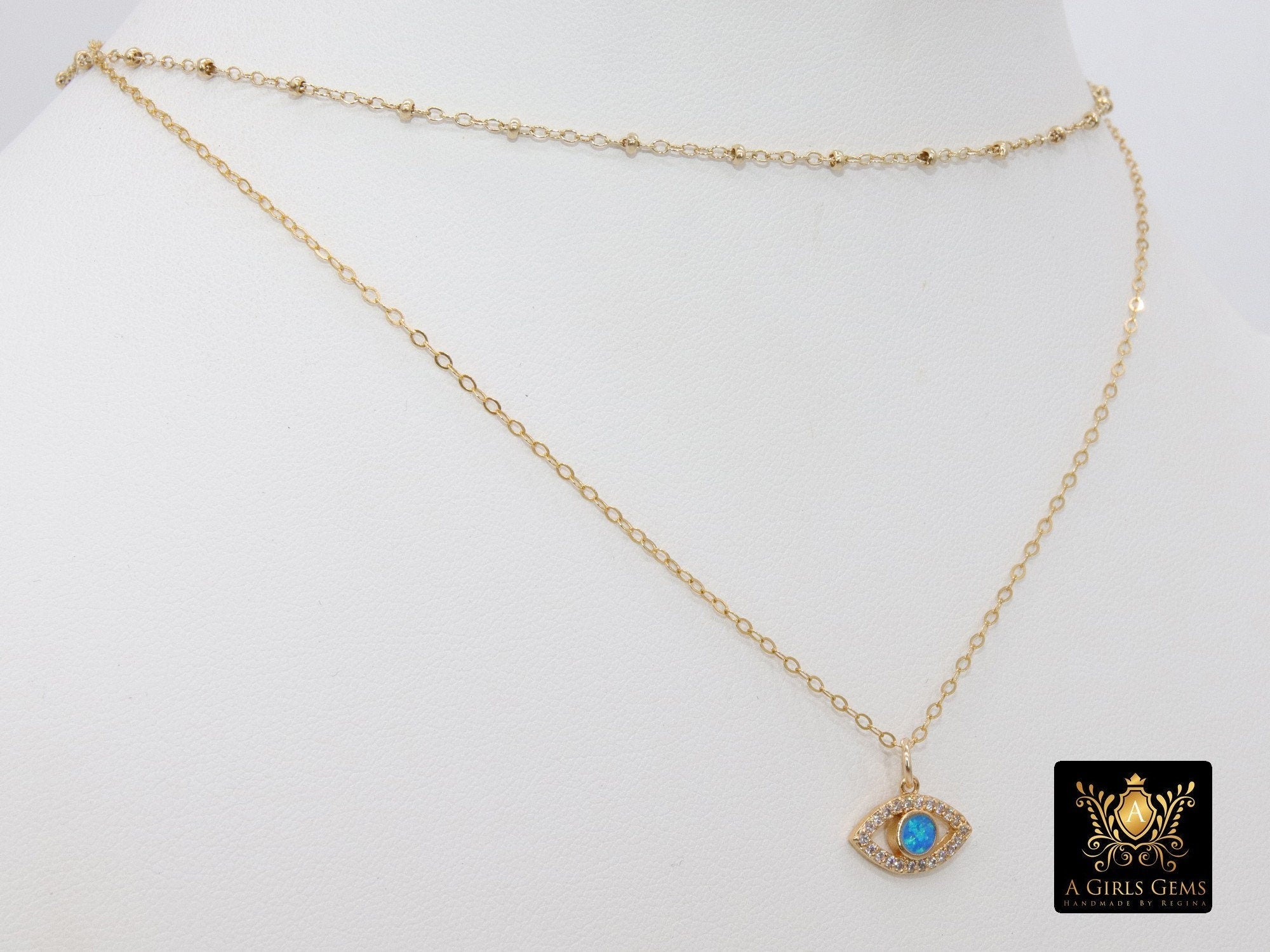 14 K Gold Filled Evil Eye Dainty Necklace, Clear Eye Cable Necklace, CZ Turquoise Blue Turkish Greek Evil Eye