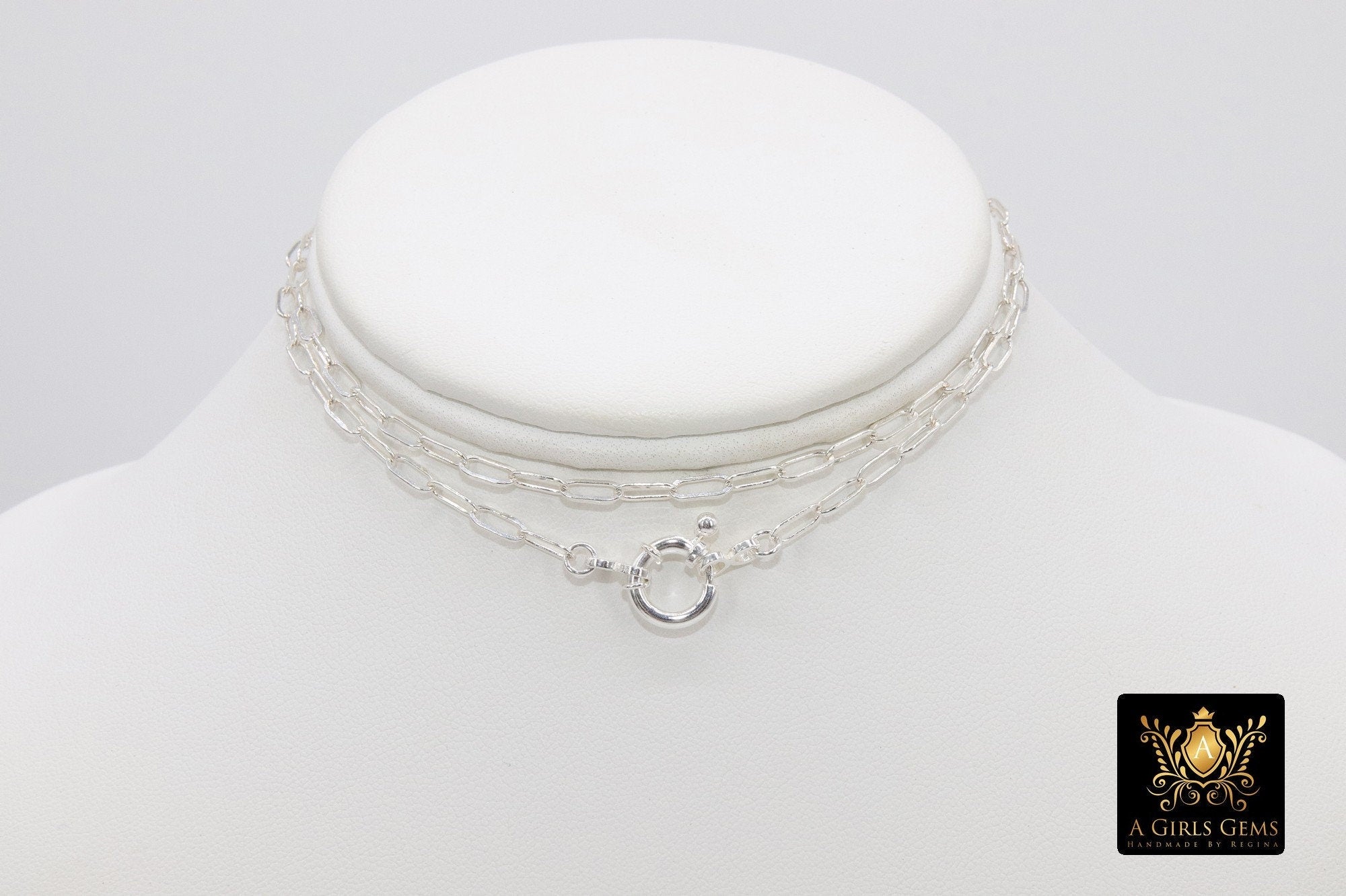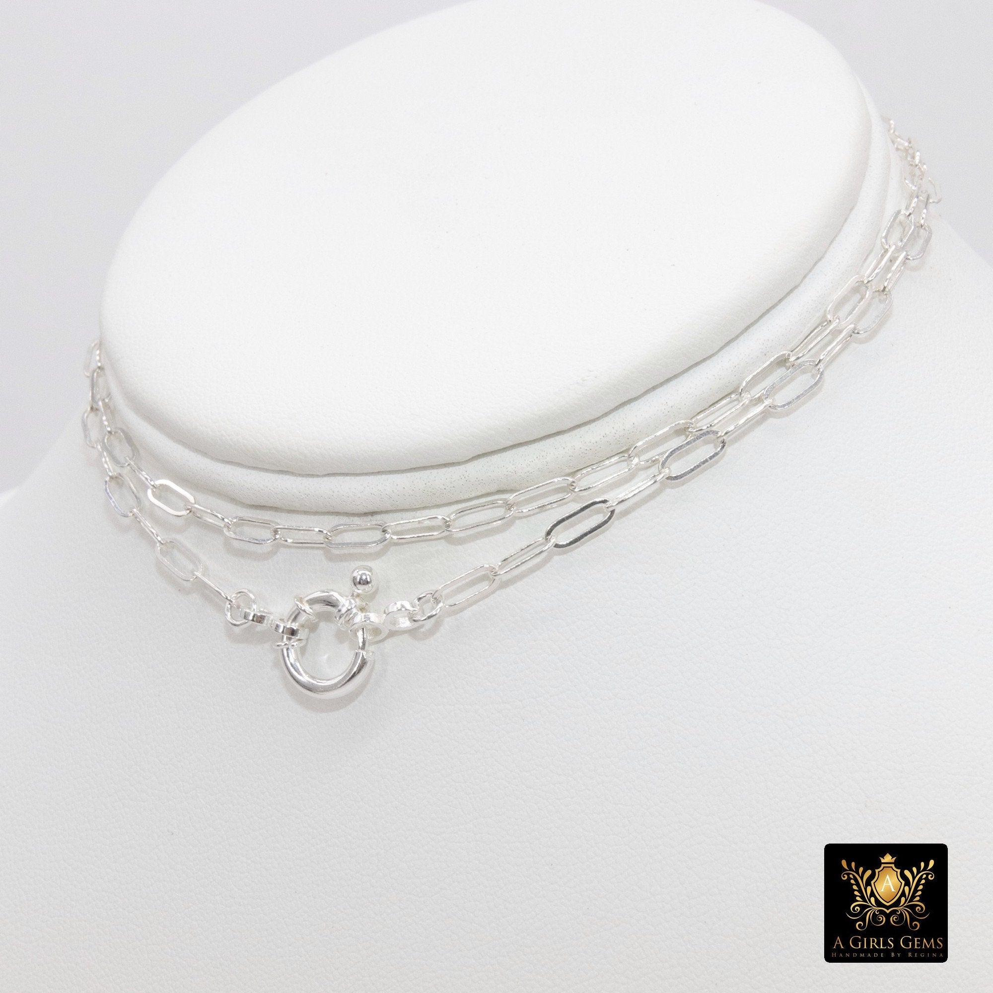 925 Sterling Silver Bracelet or Necklace, Single or Double Wrap Rectangle Drawn Cable Chain, Large Clasp